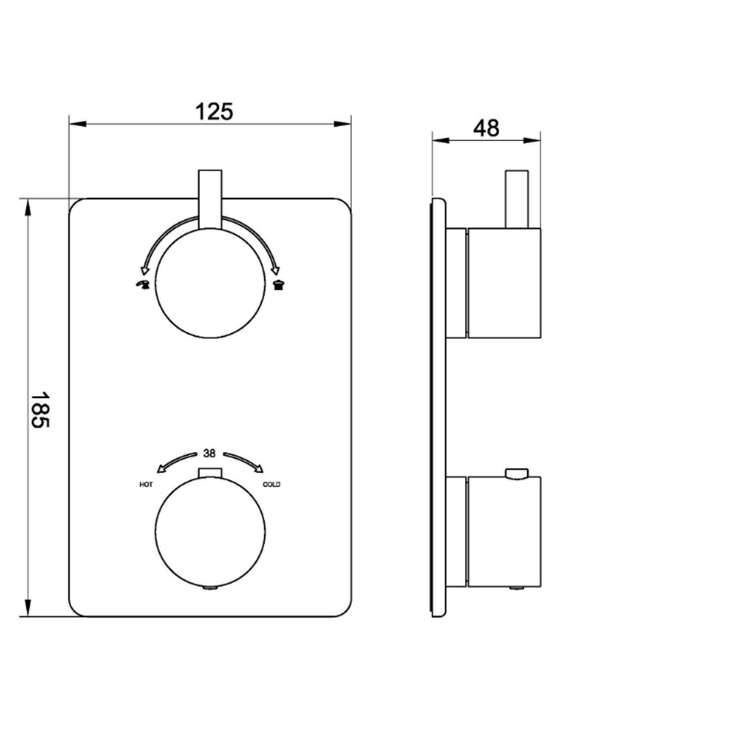 Uit de serie Karsten van BWS komt deze fraaie koperen afbouwdeel inbouwthermostaat. Deze thermostaat is voorzien van een afbouwdeel en een inbouwdeel. U kunt de thermostaat middels twee knoppen beienen. De onderste knop van de thermostaat heeft een begrenzing van 38 graden. Met de bovenste knop kunt zelf de handdouche of hoofddouche bedienen.