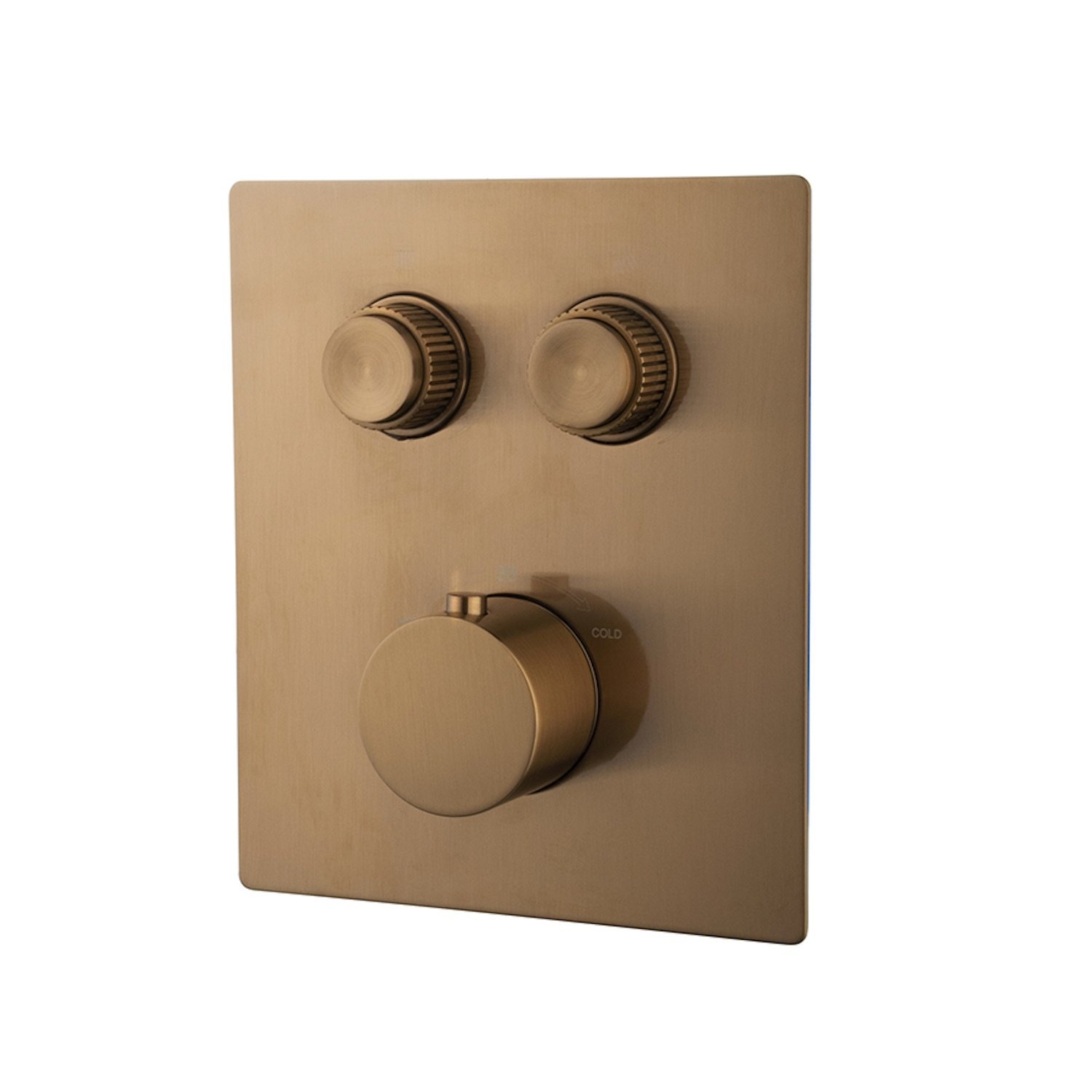 Bent u op zoek naar een afbouwdeel voor in uw douche? Dan is deze afbouwdeel van Wiesbaden uit de serie Caral Klik Pro echt iets voor u. Hij heeft de kleur geborsteld brons koper. De afmetingen van dit afbouwdeel zijn: 18 cm hoog, 15.5 cm breed en 5.6 cm diep. Bovenin het deel zitten 2 draaiknoppen, hiermee bedient u de handdouche en de hoofddouche. Met de andere draaiknop kunt u de temperatuur instellen naar de gewenste temperatuur. Door zijn strakke design en kleur past dit afbouwdeel in elke moderne badkamer.