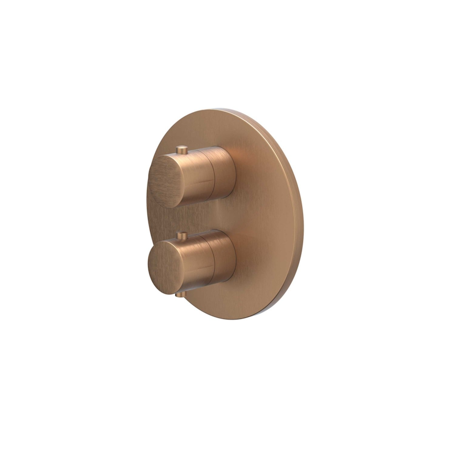 Dit afbouwdeel is van het merk IVY uit de serie Bond en is voor een inbouwthermostaat. De kraan is gemaakt van messing en heeft een rond rozet. De kleur van de kraan is Koper en heeft een geborstelde matte finish met een PVD-coating. De kraan heeft een 3-weg stop-omstel functie. Die biedt gemak in het regelen tussen verschillende wateruitgangen te schakelen.
