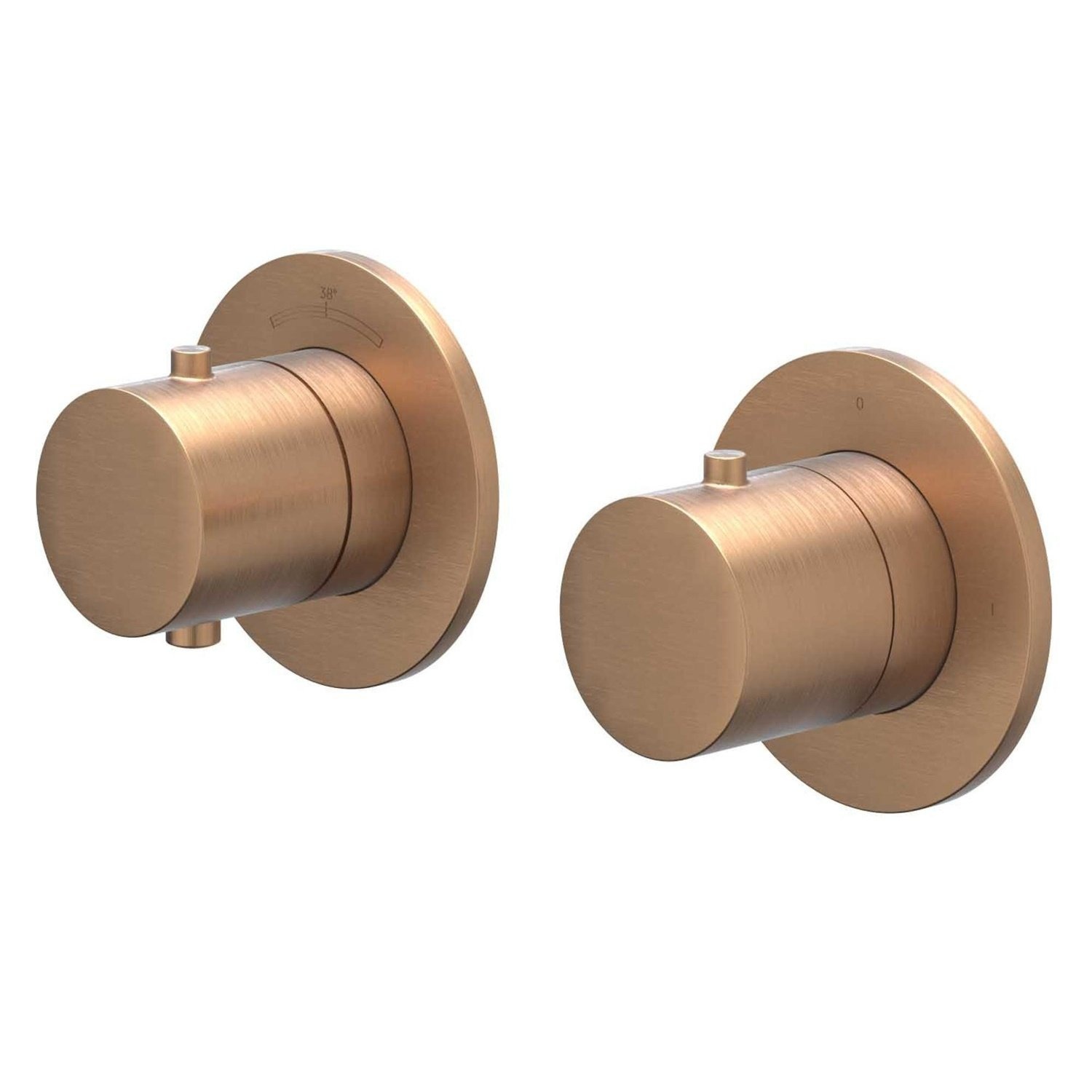 Dit afbouwdeel is van het merk IVY uit de serie Bond en is voor een inbouwthermostaat. Het afbouwdeel heeft een symmetrisch ontwerp met een ronde rozet, dit geeft een extra elegante touch aan het geheel. De koperen kleur met geborstelde matte finish geeft een moderne uitstraling en past perfect bij verschillende badkamerstijlen. De PVD-coating zorgt ervoor dat het afbouwdeel resistenter is voor corrosie en krassen. De 2-weg stop-omstel functie biedt gemak in het regelen tussen verschillende wateruitgangen te schakelen.