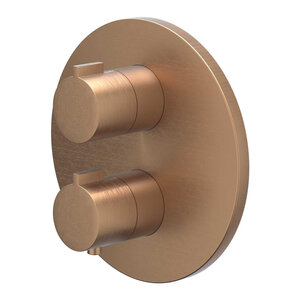 Dit afbouwdeel is van het merk IVY uit de serie Pact en is voor een inbouwthermostaat. Het afbouwdeel heeft een symmetrisch ontwerp met een ronde rozet, dit geeft een extra elegante touch aan het geheel. De koperen kleur met een geborstelde matte finish geeft een luxe uitstraling en past perfect bij verschillende badkamerstijlen. De PVD-coating zorgt ervoor dat het afbouwdeel resistenter is voor corrosie en krassen. De stop-omstel functie biedt gemak in het regelen tussen verschillende wateruitgangen te schakelen.