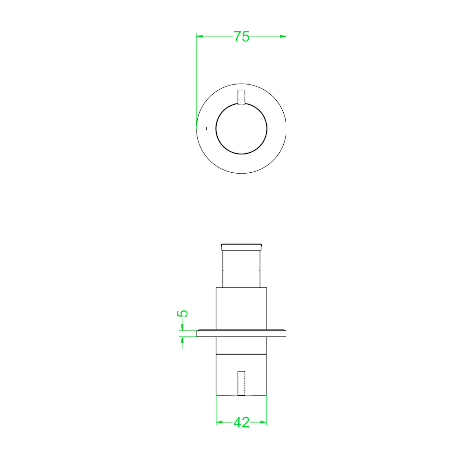 De breedte van het rozet is 7,5 cm en de breedte van de greep is 4,2 cm.