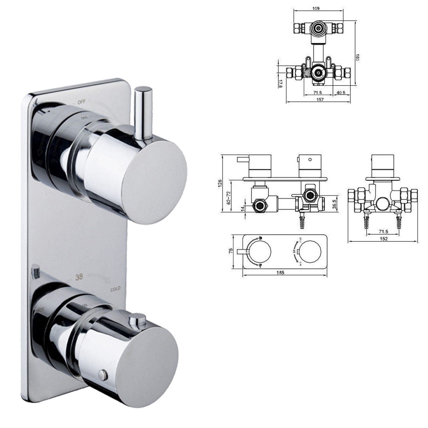 Verder wordt het inbouwdeel van de douchethermostaat in de muur verwerkt waardoor het afbouwdeel er strak uitziet. Daarbij is de kraan voorzien van keramische schijven die voor een soepele beweging van de knoppen zorgen. Het design van de kraan is rechthoekig en zorgt voor een mooie uitstraling in uw badkamer!
