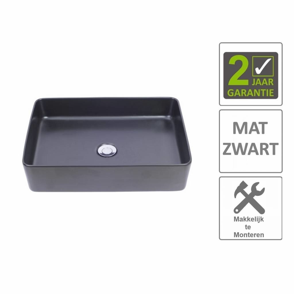 Deze mooie mat zwarte rechthoekige waskom is een echte blikvanger in uw badkamer. Mat zwarte items in de badkamer geven uw badkamer een moderne uitstraling. Uiteraard kunt u de waskom combineren met meerdere mat zwarte items in uw badkamer. De waskom is gemaakt van keramiek. Keramiek is noch metaal of polymeer en bevatten goede mechanische eigenschappen. Het is hard en heeft een hoge vloeigrens. Met uitzonderingen daargelaten is keramiek slijtvast, hittebestendig, non-elektrisch, non-magnetisch en non-metalisch. Keramiek is een hard kleigebakken materiaal met een glad oppervlak. Vuil en bacteriën glijden daardoor makkelijk van het keramiek en trekt niet in. Mede ook omdat keramiek gesloten poriën bevat waar geen vuil in kan zitten. De design waskom heeft een afmeting van 50x35x14.5 cm. Let op; de waskom wordt geleverd exclusief kraan, sifon en plug.