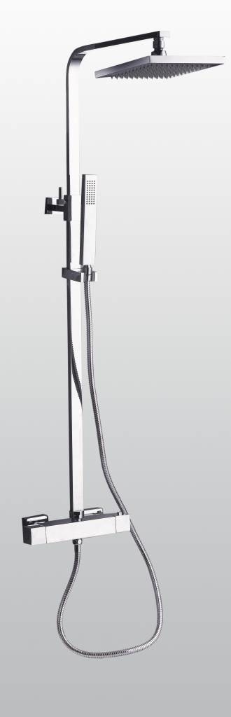 Vierkante Sani-sub regendouche is een ideale set door de glanzend chromen handdouche en slang. En met de keramische binnenwerk is de regendouche duurzaam in gebruik.