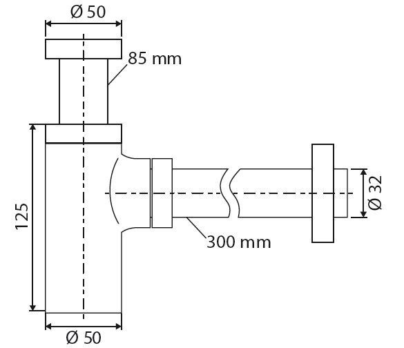 Bekersifon Rond Chroom 11/4 Incl Muurbuis En Rozet