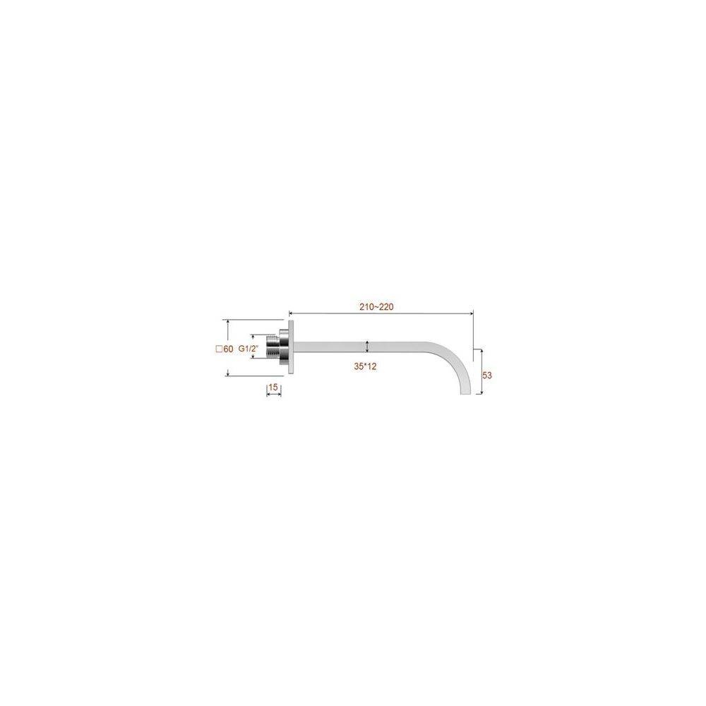 Inbouw-baduitloop vierkant 22 cm 1/2" chroom