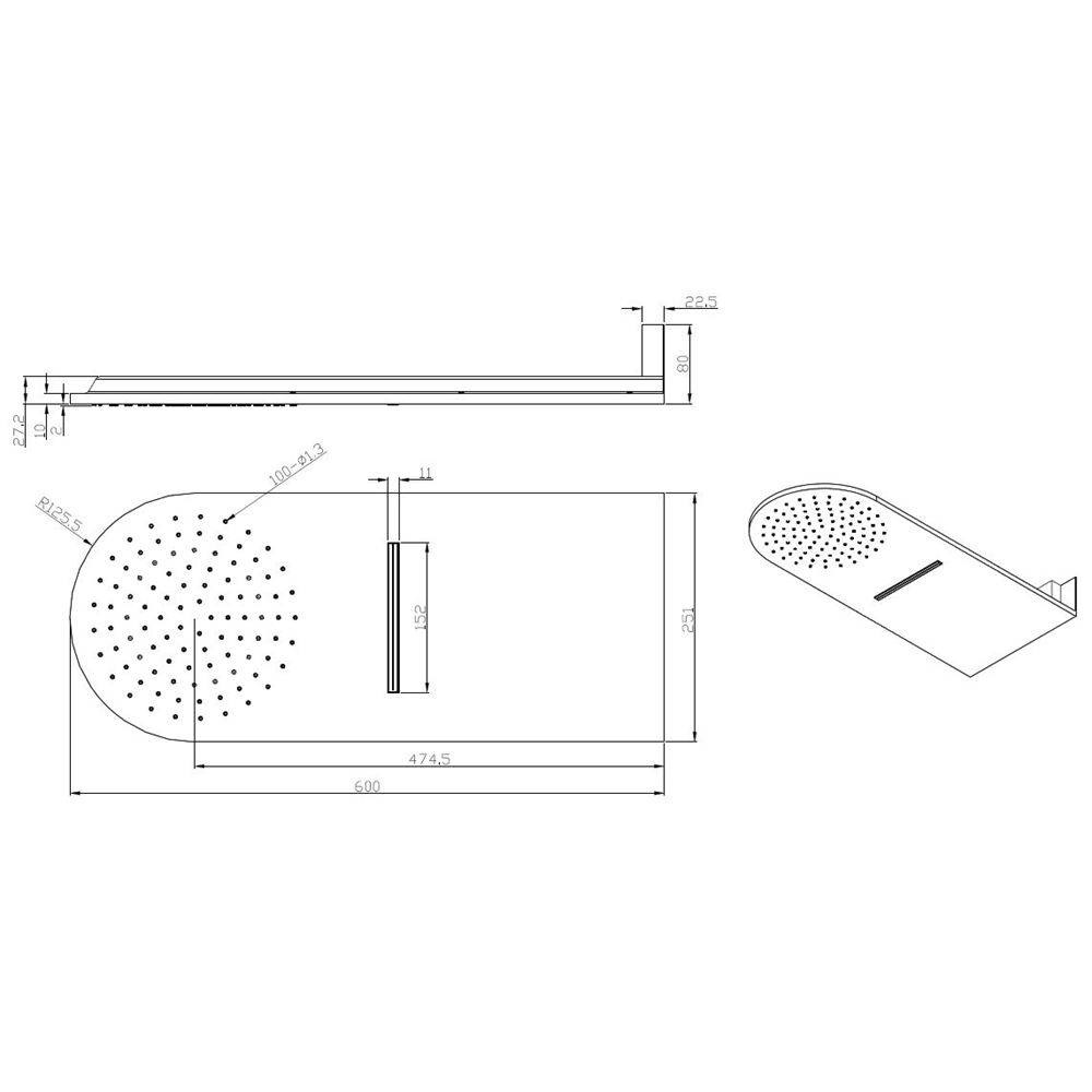Luxe Wand-Hoofddouche+Waterval 25X60 Chroom