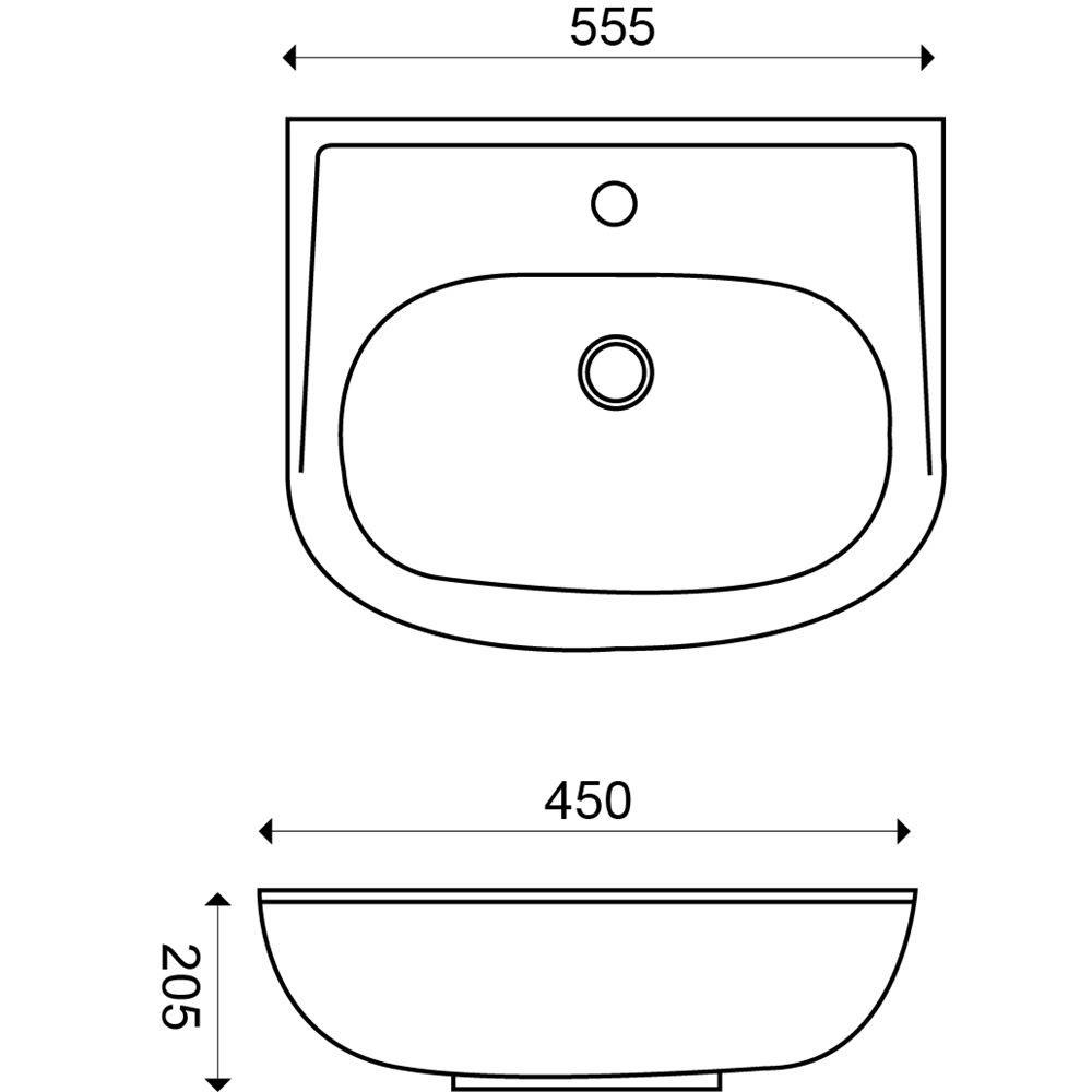 Dit is een keramische wastafel, heeft een witte kleur en heeft een afmeting van 56x45 cm.