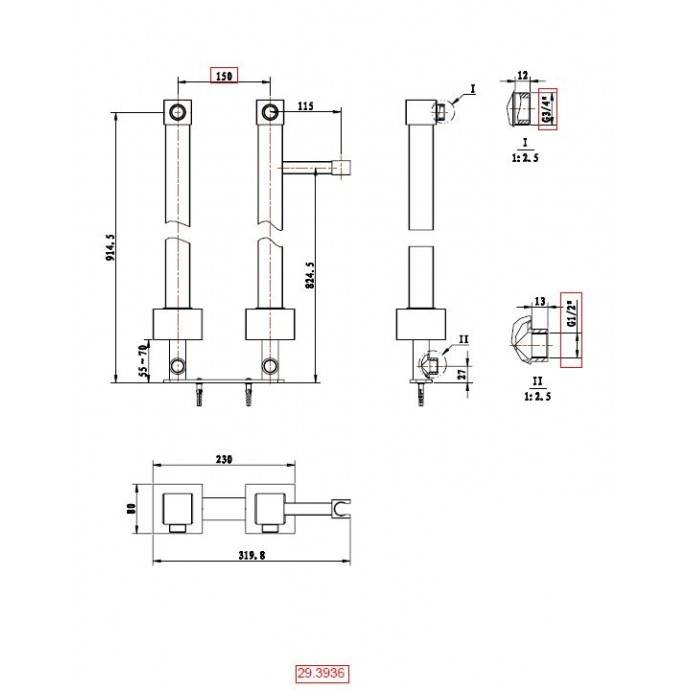 Aqua Splash Universele vrijstaande badkraankoppelingen vierkant