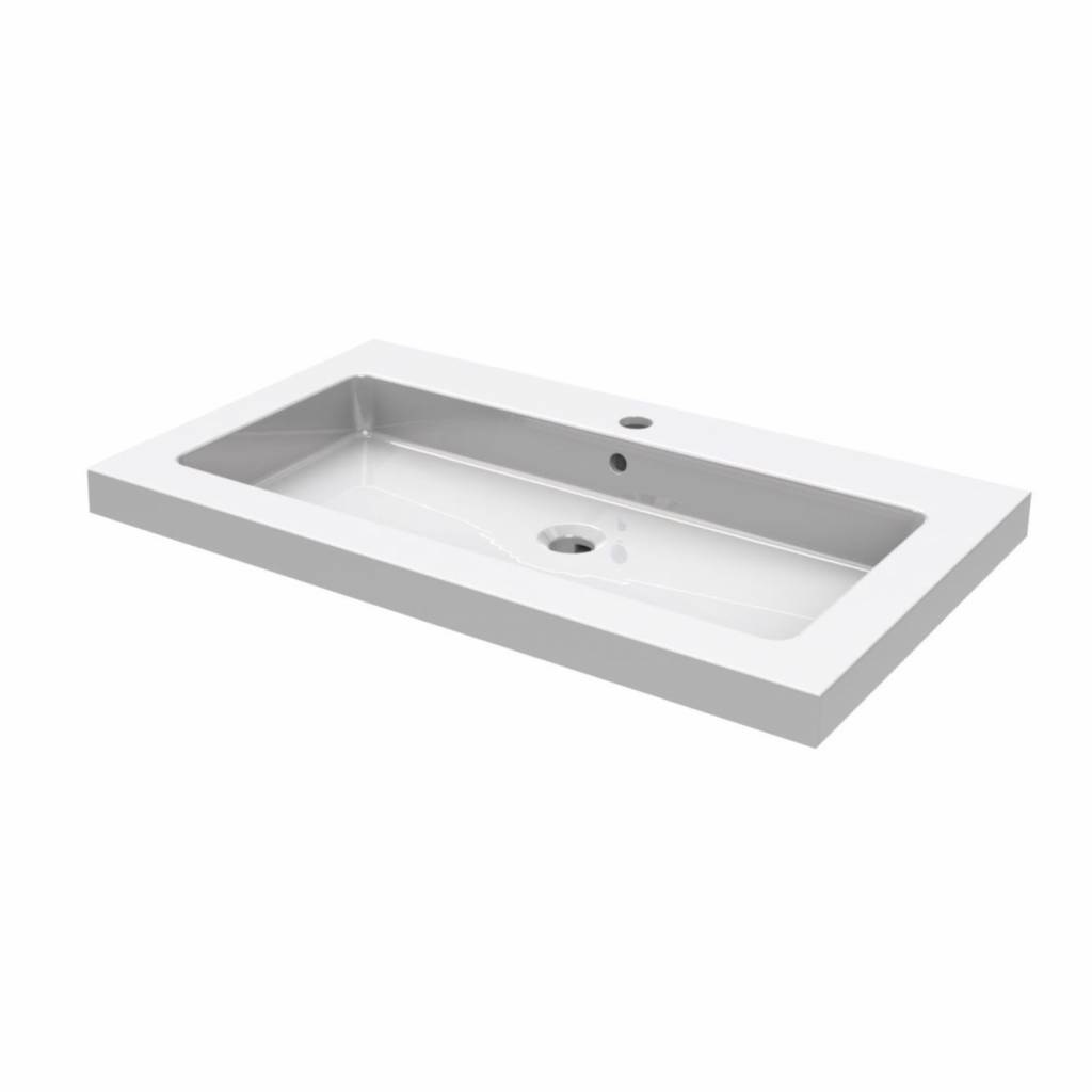 De wastafel is 80 cm breed, 46 cm diep en 5 cm hoog. U heeft de keuze uit een wastafel met 0 of 1 kraangat. Als u kiest voor 0 gaten kan u een mooie combinatie maken met een inbouw kraan.