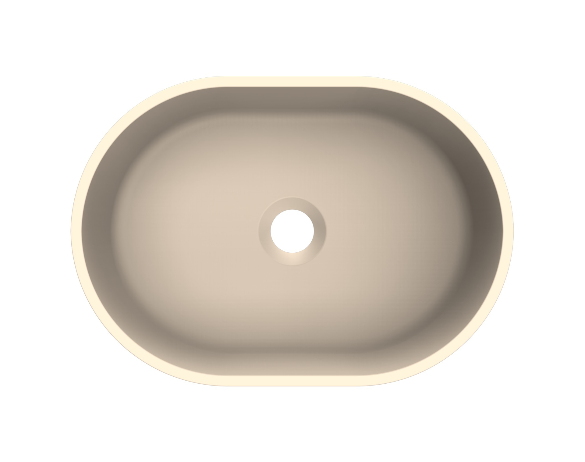 Deze specifieke waskom is ovaal en heeft een breedte van 40 cm. De kom is 28 cm diep en 13 cm hoog. Deze kom is uitgevoerd in een mat zand kleur.