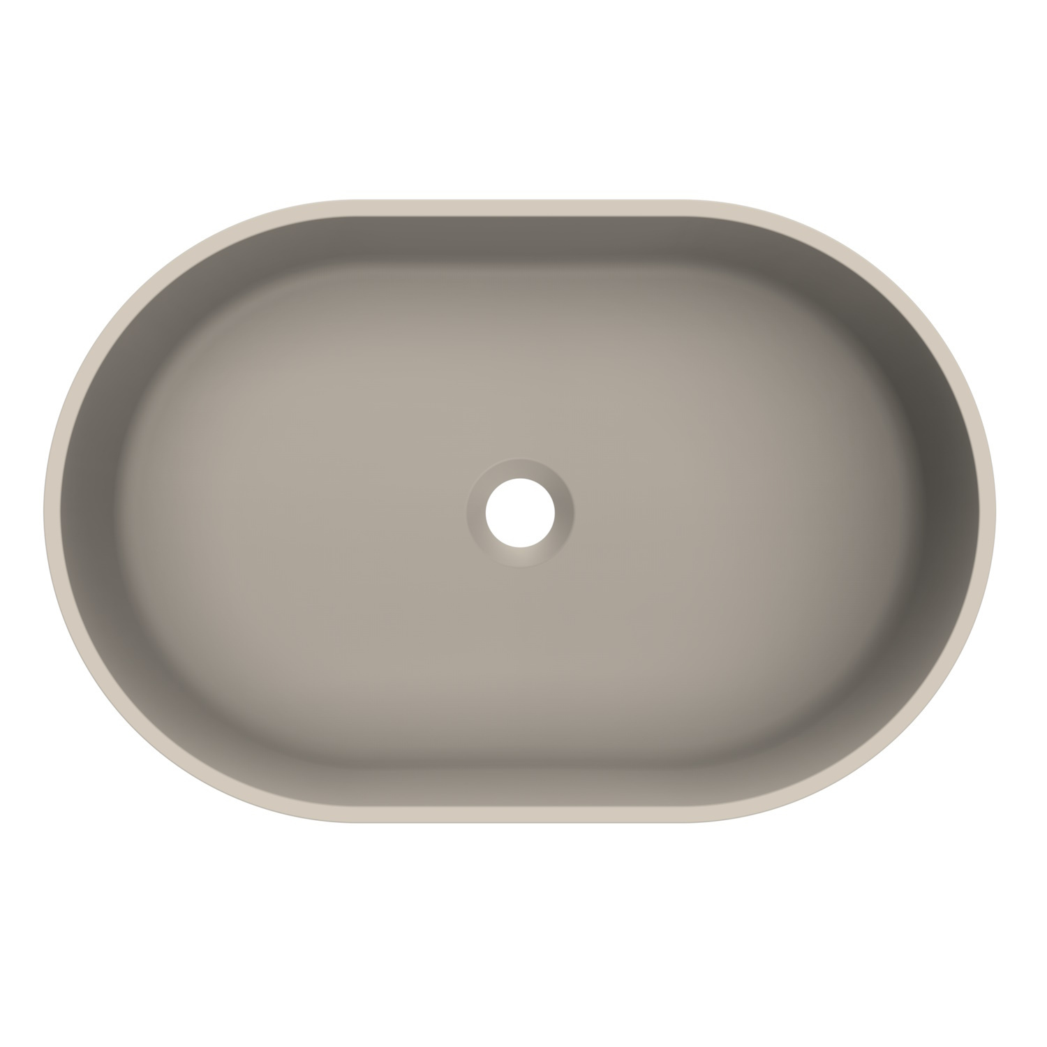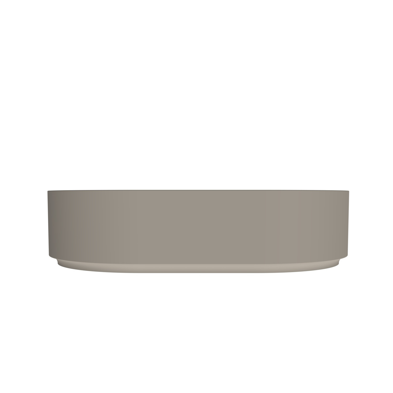 Deze specifieke waskom is ovaal en heeft een breedte van 55 cm. De kom is 36 cm diep en 13 cm hoog. Deze kom is uitgevoerd in een mat klei kleur.