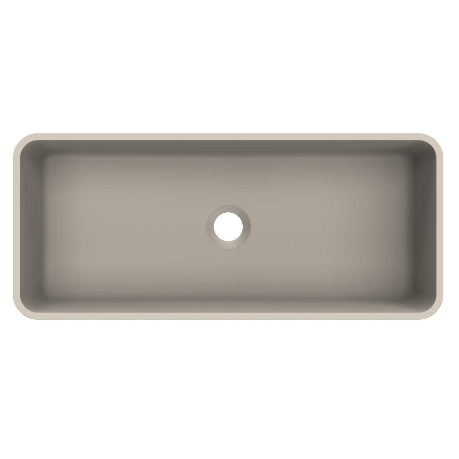 Deze specifieke waskom is rechthoekig en heeft een breedte van 60 cm. De kom is 26 cm diep en 13 cm hoog. Deze kom is uitgevoerd in een mat klei kleur.
