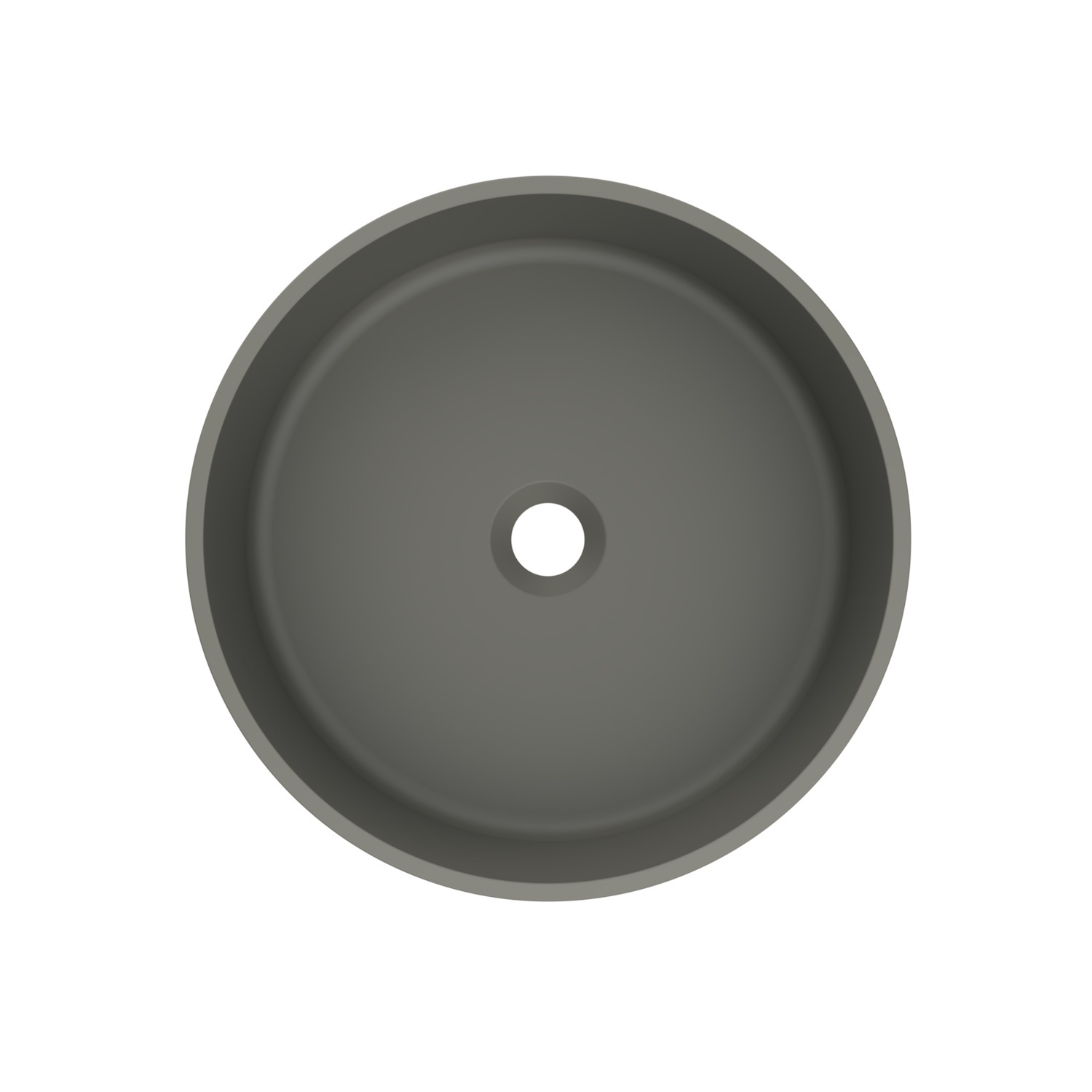 Deze specifieke waskom is rond en heeft een diameter van 40 cm. De kom is 13 cm hoog. Deze kom is uitgevoerd in een mat betonen kleur.