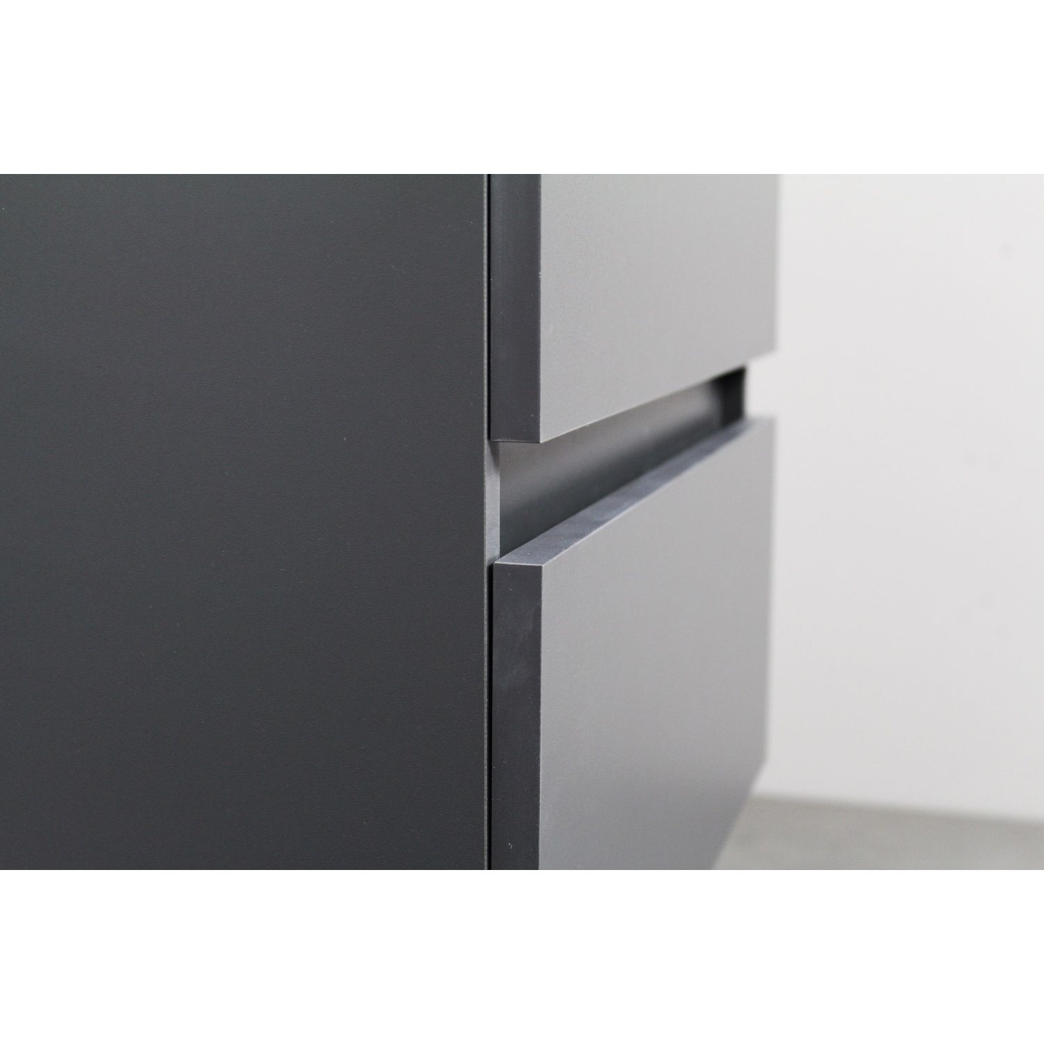 Dit prachtige badmeubel van Boss & Wessing, beschikt over een antraciet kleurige onderkast met een wastafel van acryl. De wastafel wordt geleverd zonder kraangat, maar wilt u toch beschikken over een kraan, kunt u kiezen voor de aanschaf van een inbouw kraan. Het badmeubel wordt daarin tegen geleverd inclusief spiegel, waardoor u deze dus niet meer los hoeft bij te bestellen. Het badmeubel heeft een breedte van 100 cm, een hoogte van 55 cm en een diepte van 46 cm. De set is in meerdere afmetingen en verschillende kleuren beschikbaar.