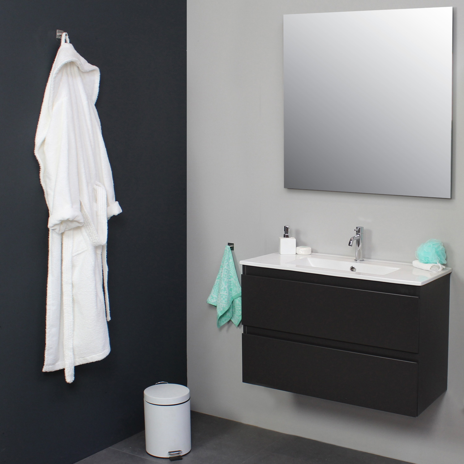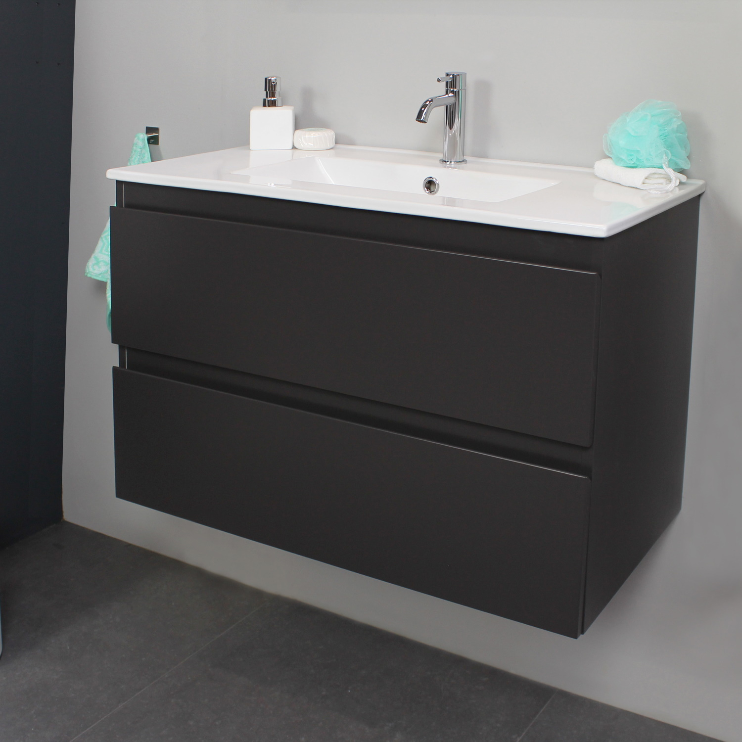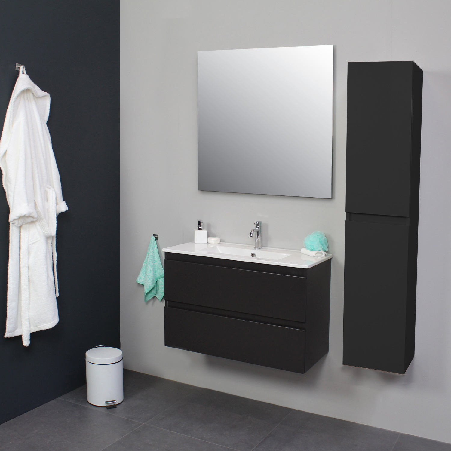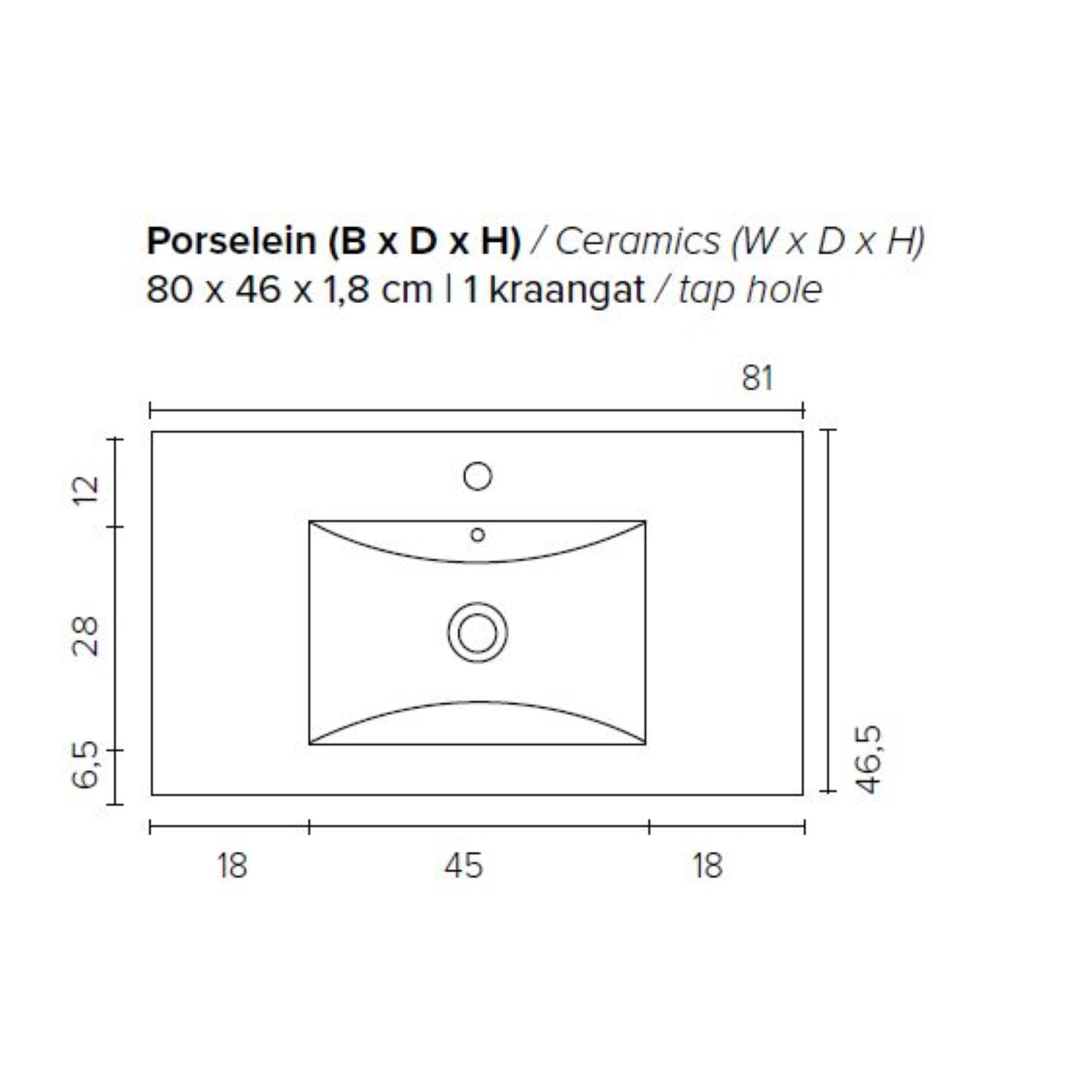 Dit prachtige badmeubel van Boss & Wessing, beschikt over een antraciete onderkast met een wastafel van porselein. De wastafel wordt geleverd met kraangat, dus heeft u de optie om een opbouwkraan toe te voegen aan uw wastafel. Het voordeel van porselein is, is dat het harder is dan ander soort aardewerk. Daarnaast ook een stuk witter, waardoor het zorgt voor een betere uitstraling in de badkamer. Het badmeubel heeft een breedte van 80 cm, een hoogte van 55 cm en een diepte van 46 cm. De set is in meerdere afmetingen en verschillende kleuren beschikbaar.
