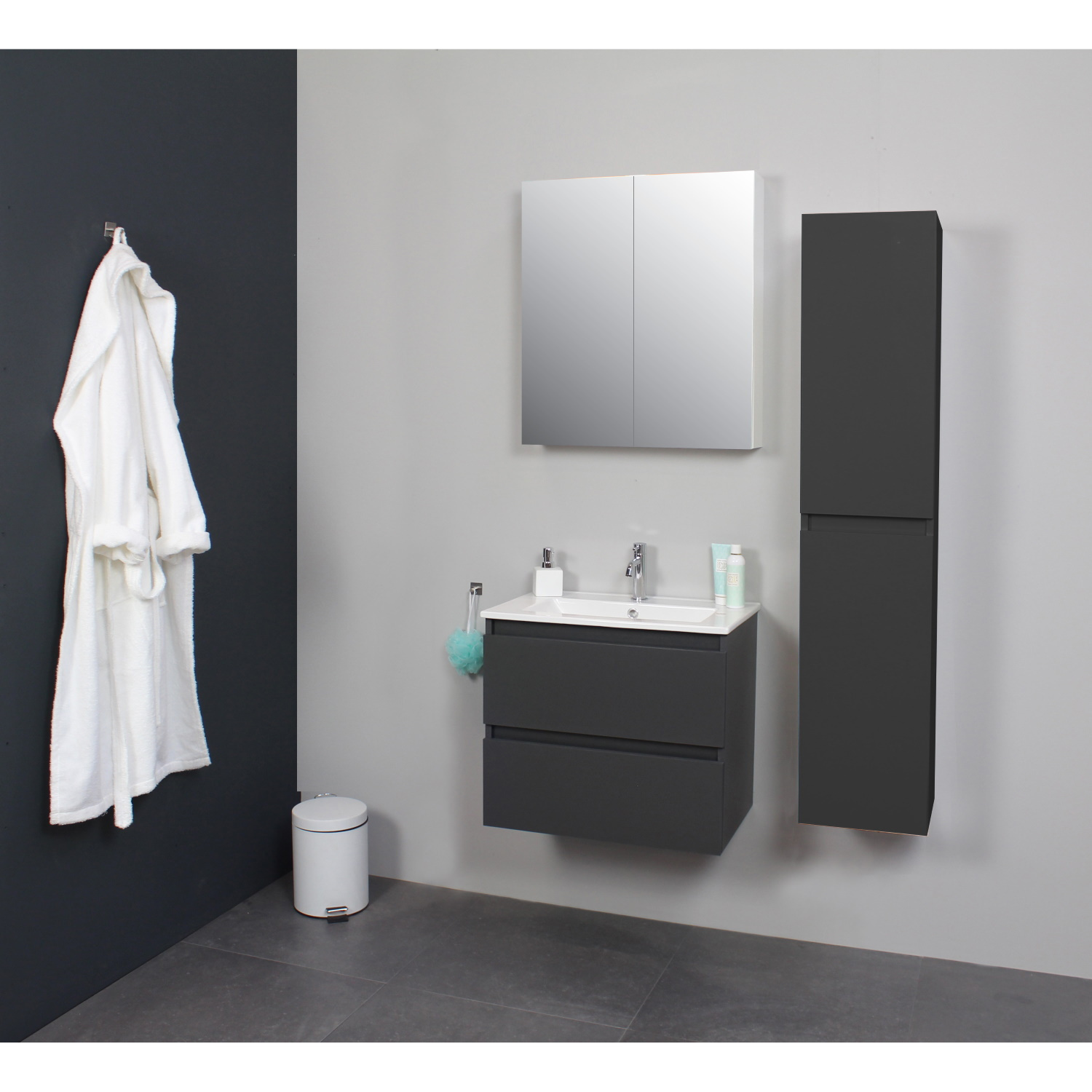 Dit prachtige badmeubel van Boss & Wessing, beschikt over een antraciet kleurige onderkast met een wastafel van porselein. De wastafel wordt geleverd met kraangat, dus heeft u de optie om een opbouwkraan toe te voegen aan uw wastafel. Het voordeel van porselein is, is dat het harder is dan ander soort aardewerk. Daarnaast ook een stuk witter, waardoor het zorgt voor een betere uitstraling in de badkamer. Het badmeubel heeft een breedte van 60 cm, een hoogte van 55 cm en een diepte van 46 cm. De set is in meerdere afmetingen en verschillende kleuren beschikbaar.