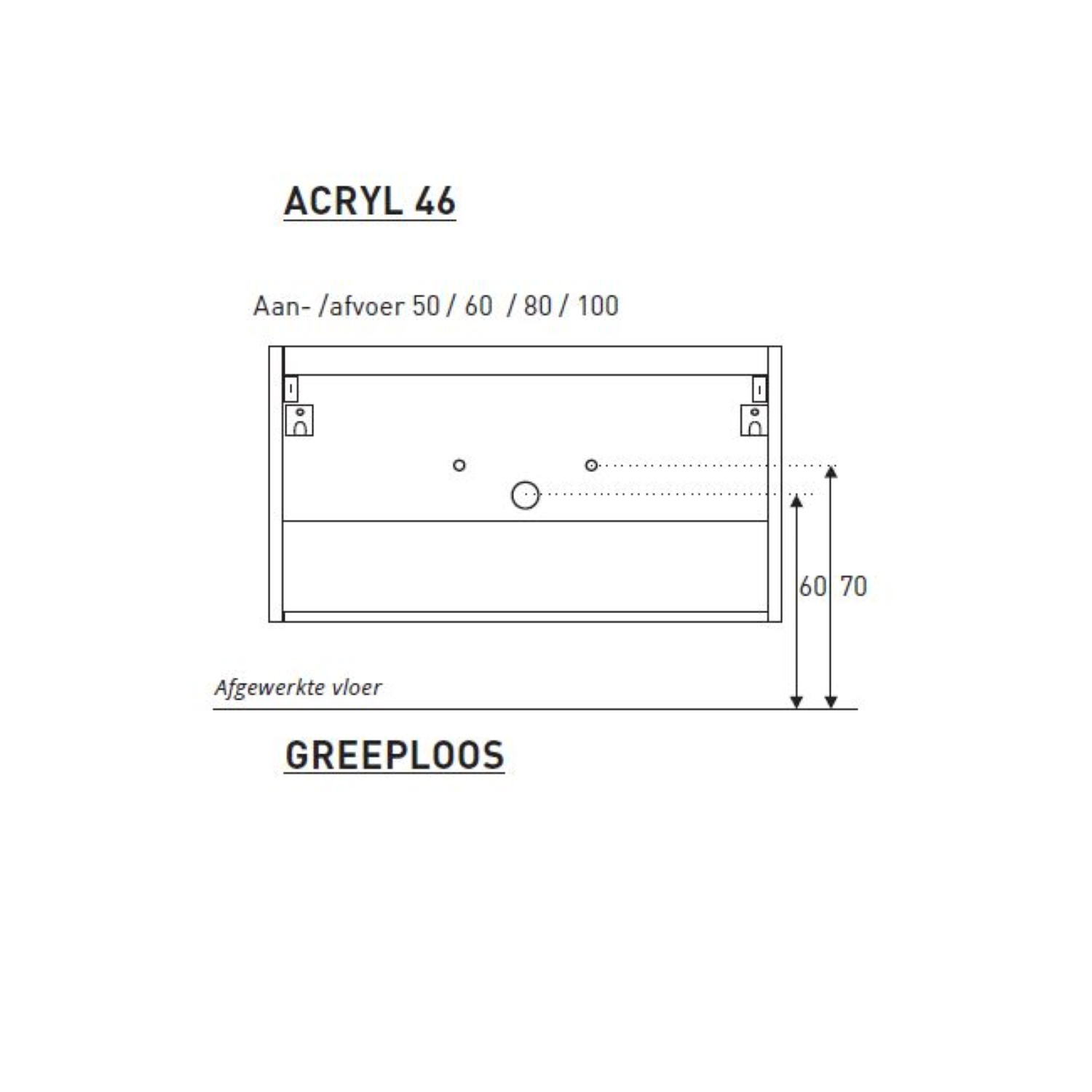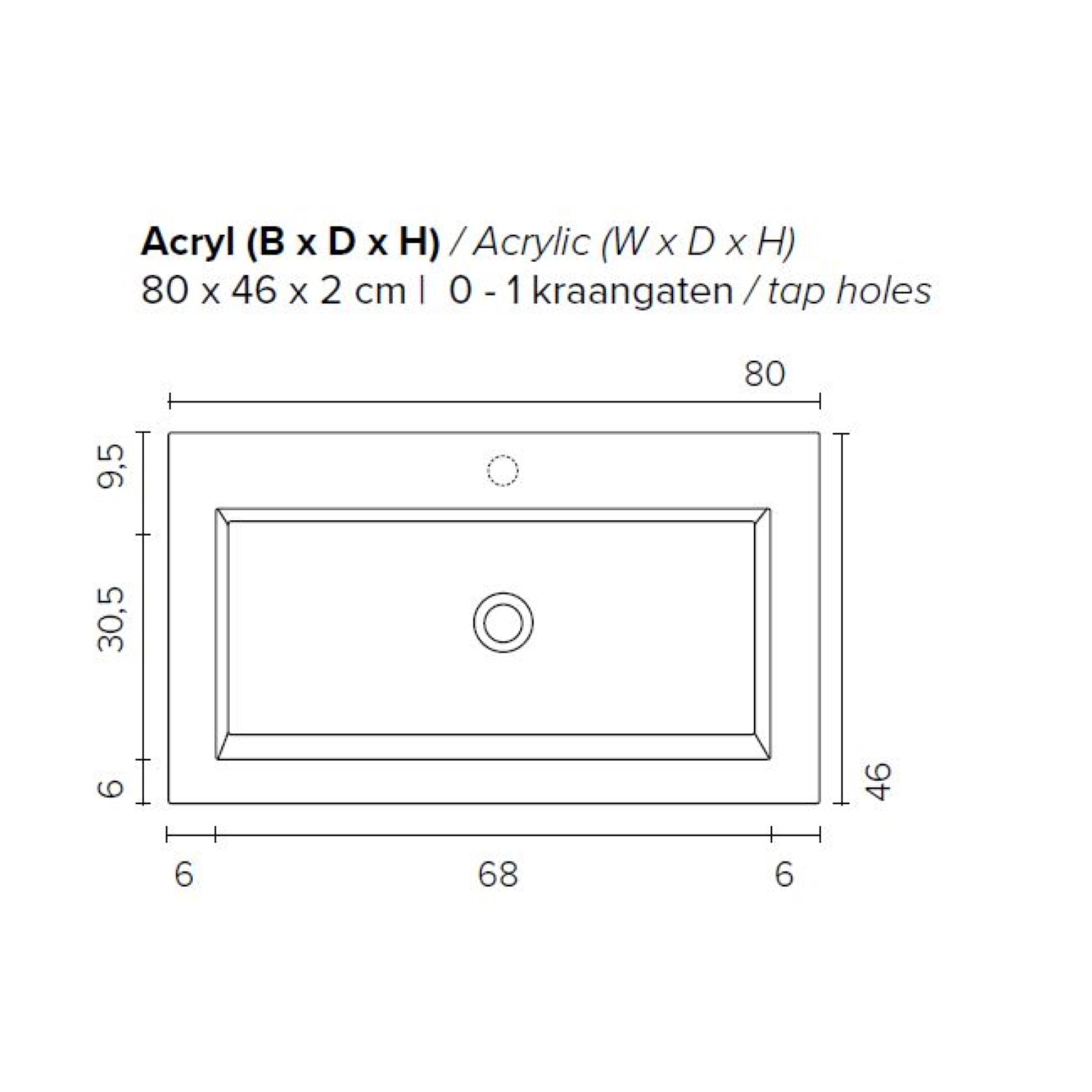 De afmetingen van het badmeubel zijn: 80 cm in de breedte, 55 cm in de hoogte en 46 cm diepte.