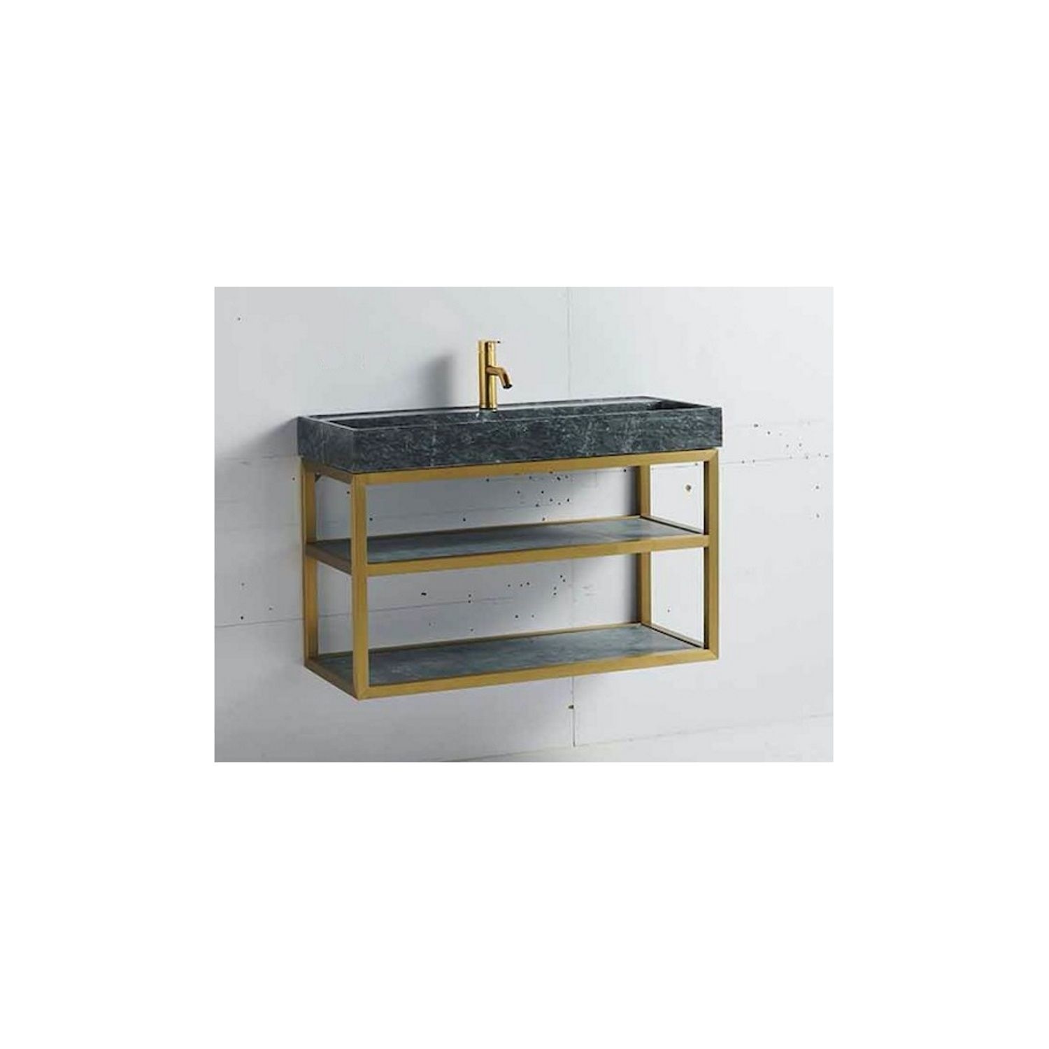 Het meubel is 100 cm breed, 42 cm diep en 55 cm hoog. Onder de wastafel bevinden zich twee losse plateaus met een inlay van natuursteen. Hierdoor creëert het meubel erg veel opbergruimte voor bijvoorbeeld uw handdoeken.