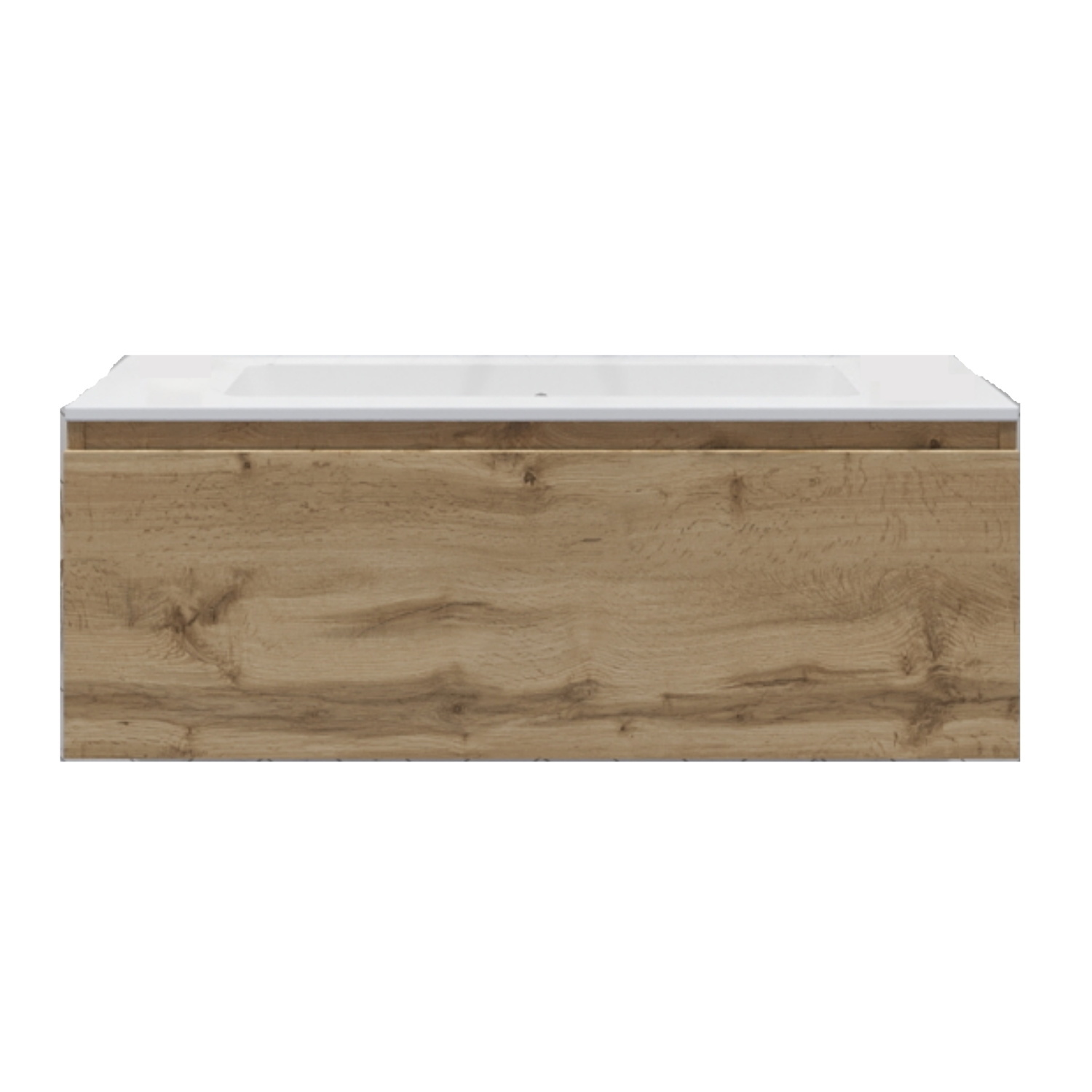 Het badkamermeubel is volledig greeploos, wat bijdraagt aan het strakke design van het meubel. Deze set bestaat uit een onderkast met front en de Gliss Asia wastafel. De wastafel is gemaakt van cast marble. Cast marble bestaat uit een samenstelling van mineraalpoeder en polyesterhars. Het voordeel van cast marble is dat dit materiaal eenvoudig te onderhouden is met de gebruikelijke schoonmaak middelen. Echter wordt wel afgeraden om het oppervlak schoon te maken met schuursponsen vanwege de coating laag die de wastafel bevat.