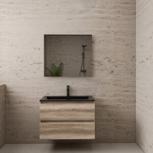AKTIE! Badmeubel Boss & Wessing Paris 80 cm Mat Zwart Wastafel Compleet Canyon Oak (1 kraangat)