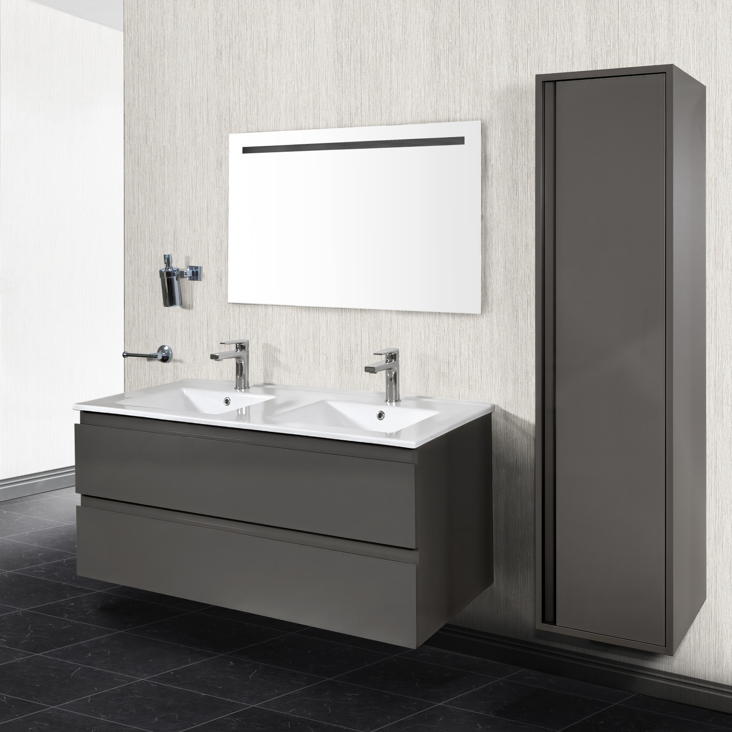 De set maakt u compleet door een bijpassende kolomkast en badkamerspiegel aan uw bestelling toe te voegen voor een meerprijs. De kolomkast heeft eveneens een afwerking in de kleur hoogglans antraciet en is leverbaar in hoogtes van 135 en 160 cm. Tot slot heeft u de keuze uit drie verschillende spiegels die qua afmeting overeen komen met de onderkast en de wastafel.