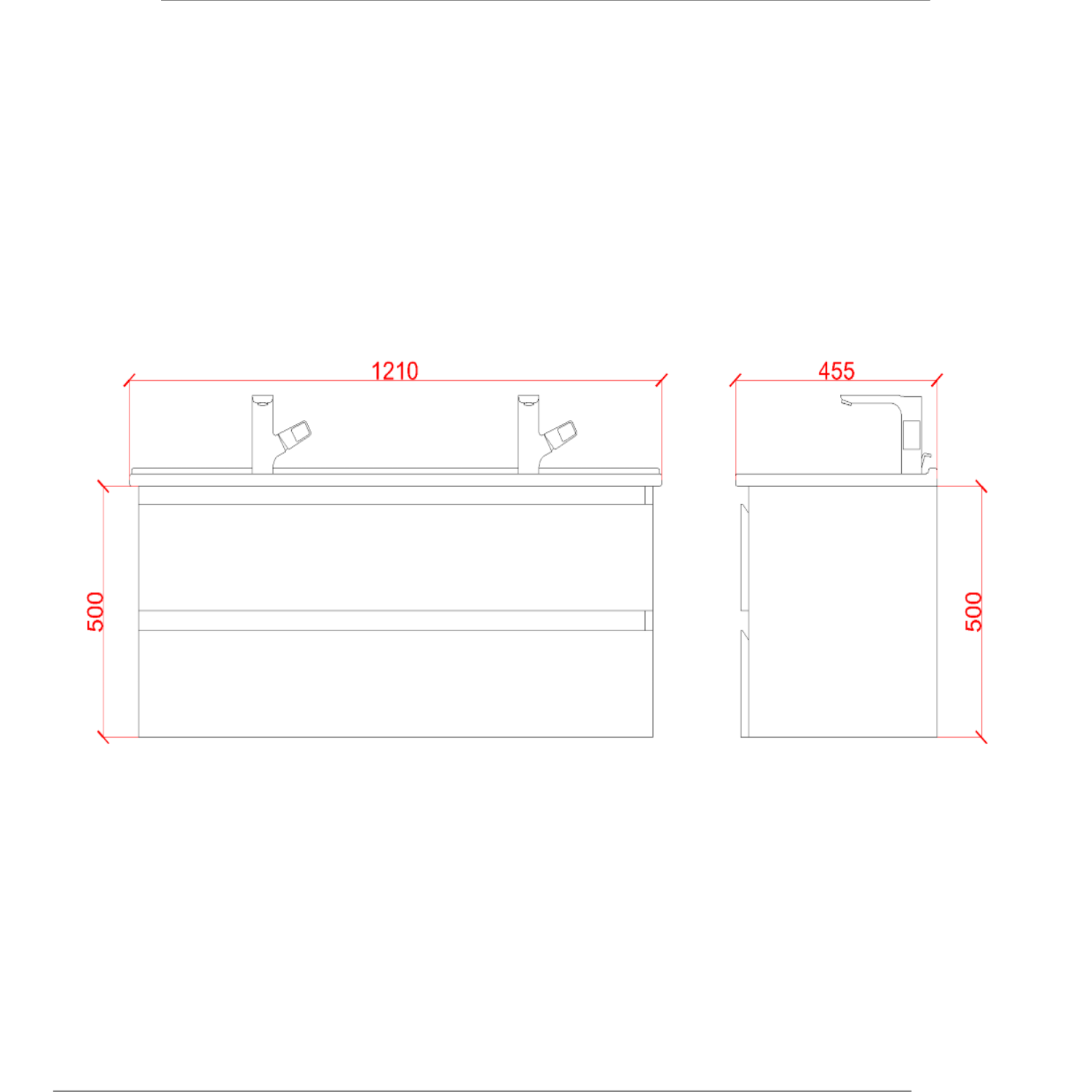 De wastafel is voorzien van twee spoelbakken die beiden zijn uitgerust met een overloop. Ook bevindt zich achter beide spoelbakken een kraangat waar u een kraan naar keuze in kunt monteren. Zo kunt u dit meubel volledig naar eigen wens inrichten! De wastafel heeft een dikte van slechts 1,9 cm waardoor deze nauwelijks ruimte in beslag neemt.