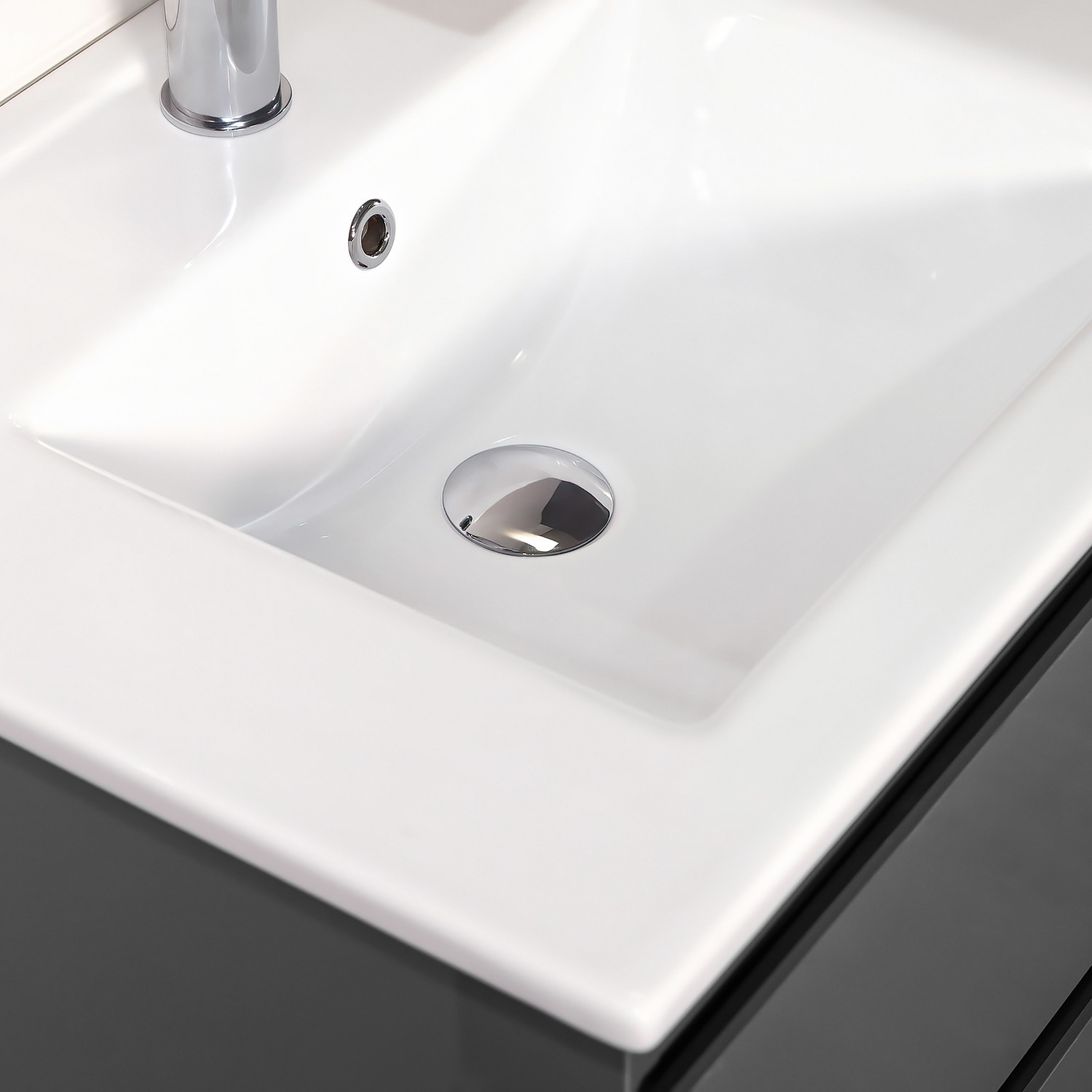 De wastafel die standaard bij deze set mee wordt geleverd heeft een hoogglans witte kleur en is gemaakt van keramiek. Keramiek is een hard kleigebakken materiaal met een glas oppervlak. Keramiek bevat gesloten poriën waardoor vuil en bacteriën niet in het materiaal kunnen dringen. Dat maakt keramiek onderhoudsvriendelijk en hygiënisch, perfect materiaal voor sanitair. Met een afmeting van 60x46 cm sluit deze wastafel naadloos op de onderkast aan.