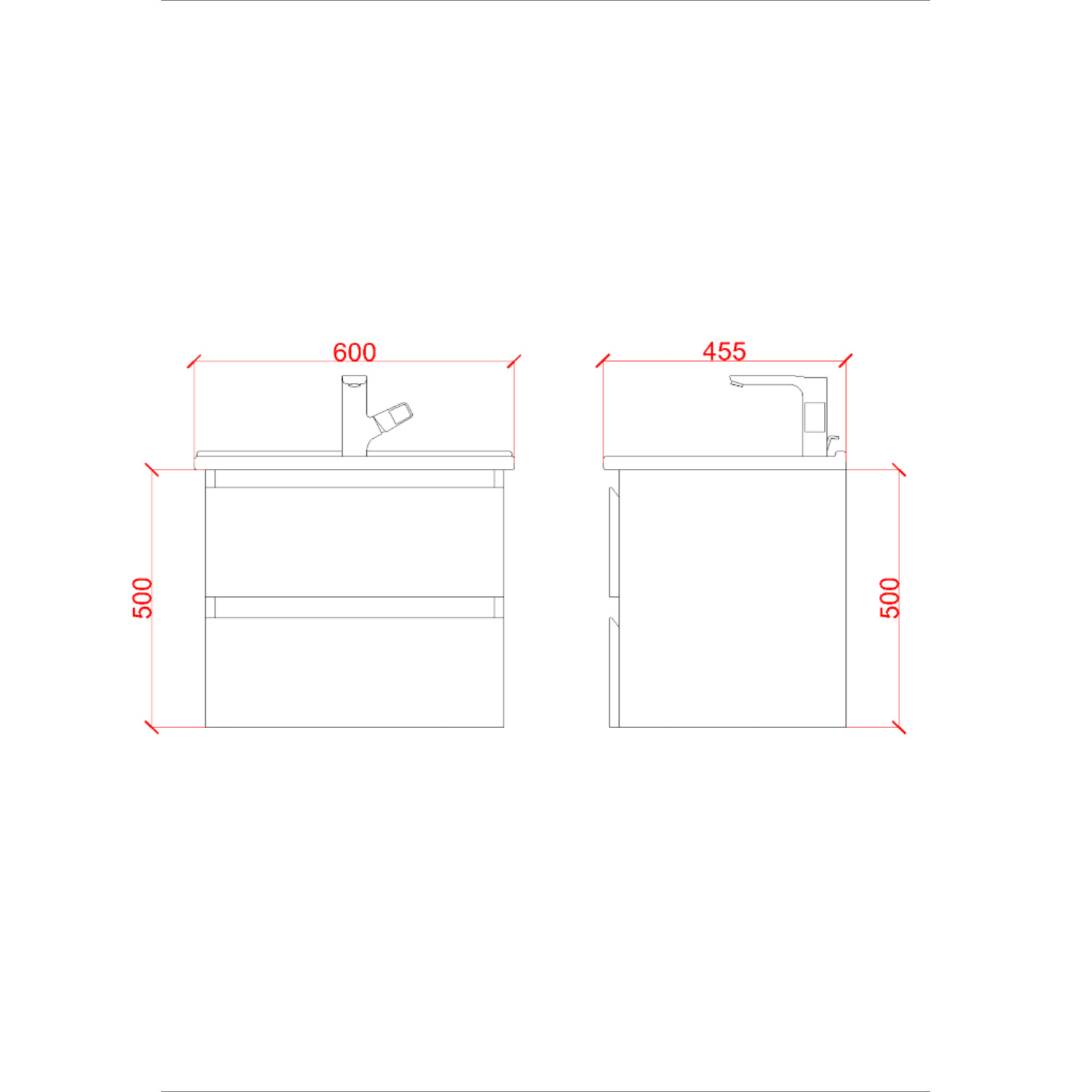 De onderkast van het Sally badkamermeubel is gemaakt van MDF en kent een bijzondere afwerking in de kleur mat antraciet. De onderkast kent een breedte van 60 cm, een diepte van 45,5 cm en een hoogte van 50 cm. De onderkast is uitgerust met twee soft-close lades waarin u diverse badkamerartikelen op kunt bergen. Het soft-close systeem zorgt ervoor dat de lades zacht en geruisloos sluiten na gebruik. Zo wordt eventuele schade aan de kast door een te hard dichtslaande lade voorkomen.