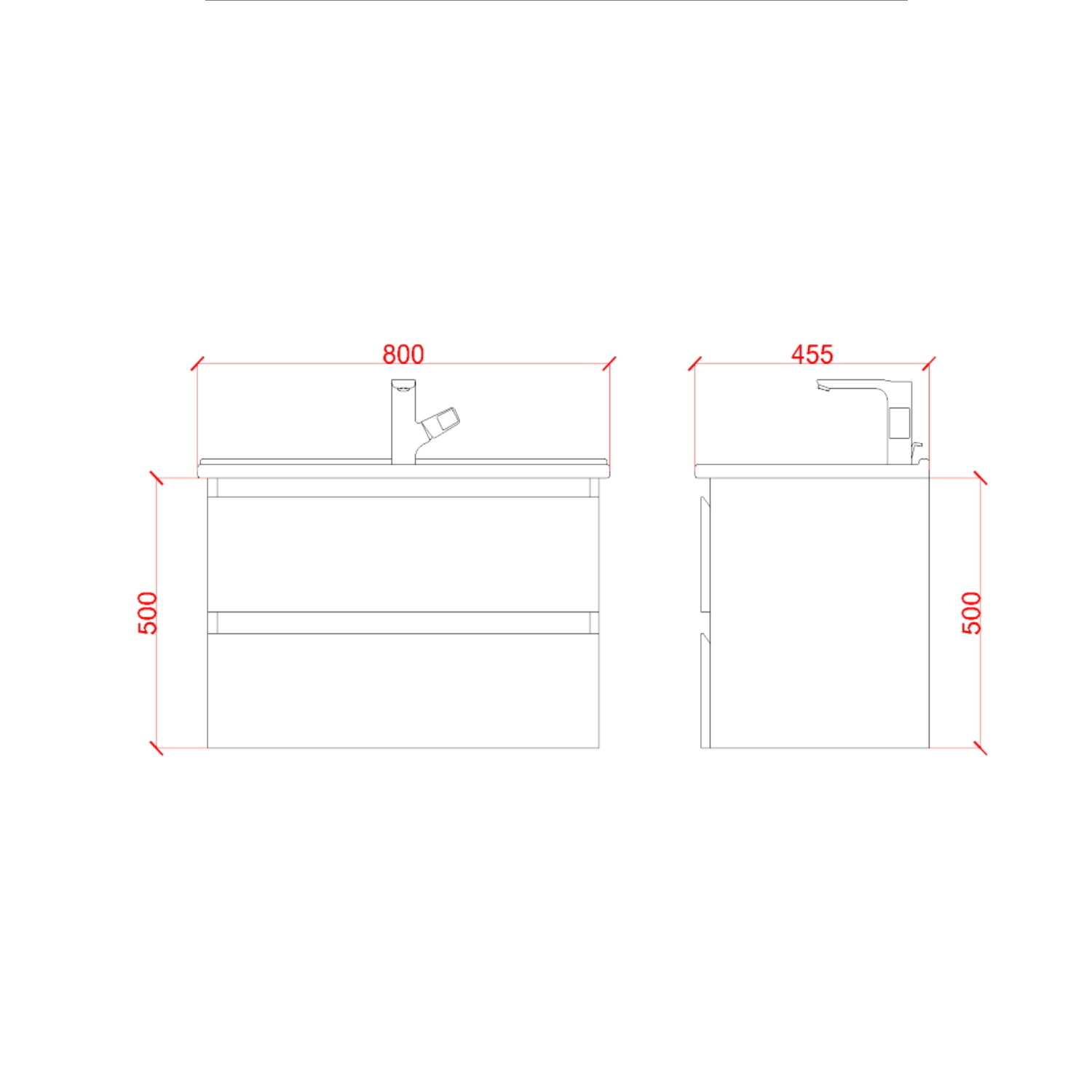 De wastafel die standaard bij deze set mee wordt geleverd heeft een hoogglans witte kleur en is gemaakt van keramiek. Keramiek is een hard kleigebakken materiaal met een glas oppervlak. Keramiek bevat gesloten poriën waardoor vuil en bacteriën niet in het materiaal kunnen dringen. Dat maakt keramiek onderhoudsvriendelijk en hygiënisch, perfect materiaal voor sanitair. Met een afmeting van 80x46 cm sluit deze wastafel naadloos op de onderkast aan.