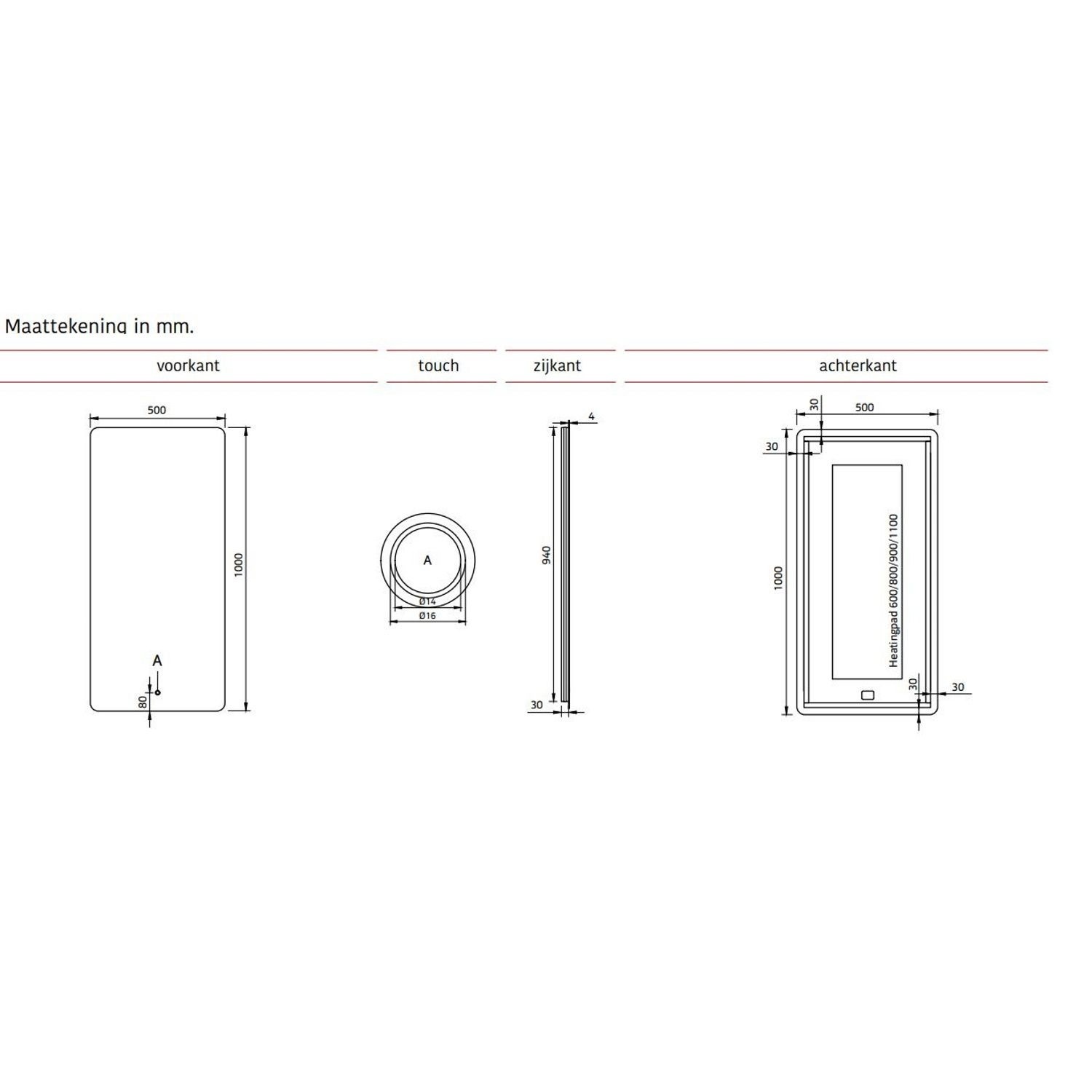 De badkamerspiegel heeft ook een verwarmingselement. Door de spiegelverwarming die achterop de spiegel is geplaatst zal er ter plaatse van het verwarmingselement geen condens meer ontstaan.
