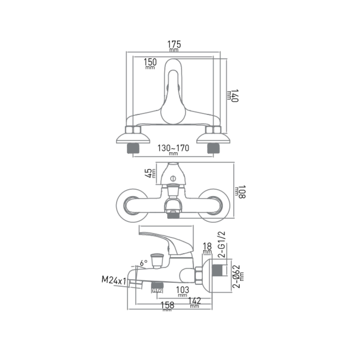 Praktisch om te weten is dat de hartafstand van de kraan 15cm is. Dat is de afstand waarmee de buizen voor warm en koud water uit de muren komen. Mocht u een oudere badkamer hebben en de badkraan willen vervangen kan het zijn dat de oude hartafstand 12cm is. Er worden S-koppelingen meegeleverd om de afstand van 12cm naar 15cm te krijgen.