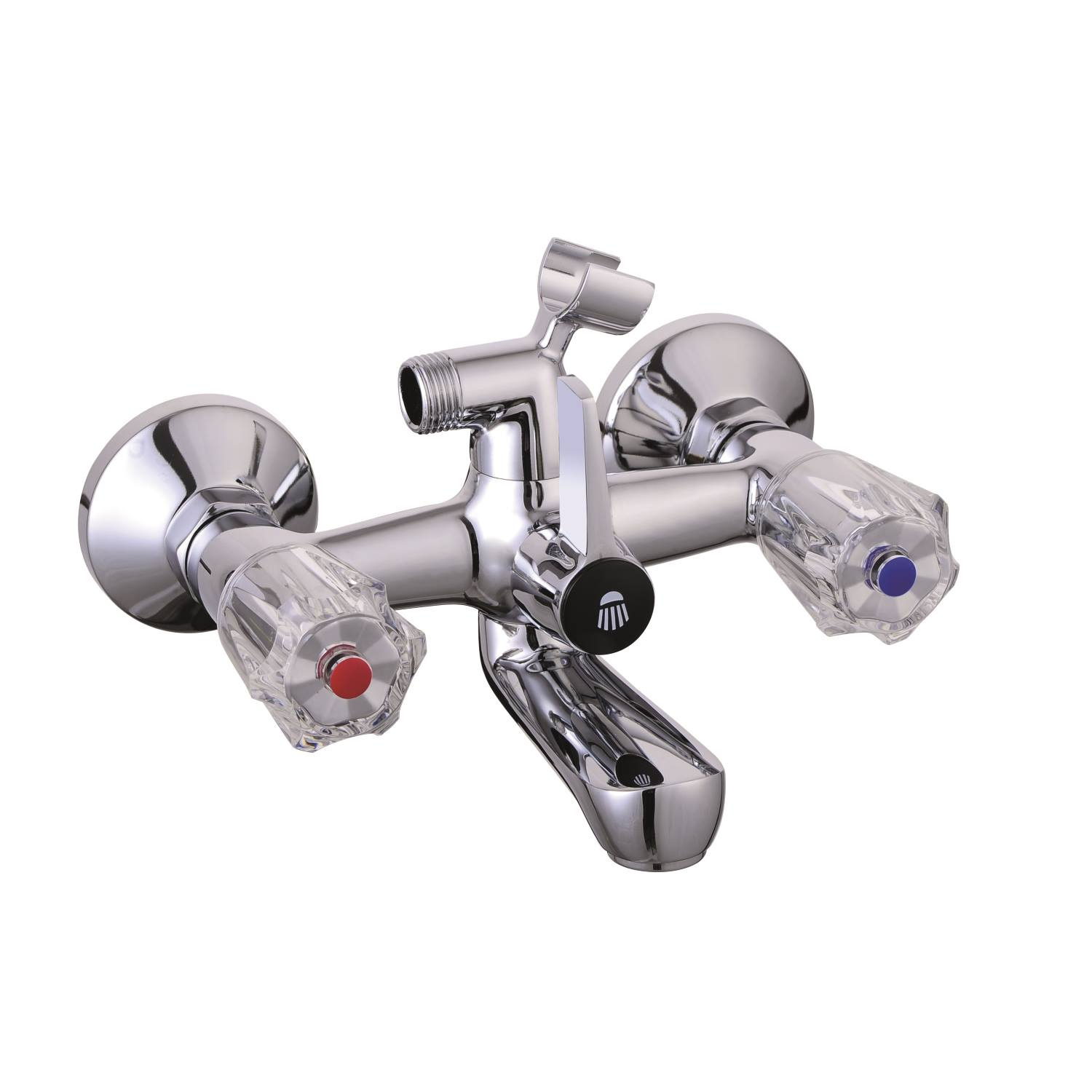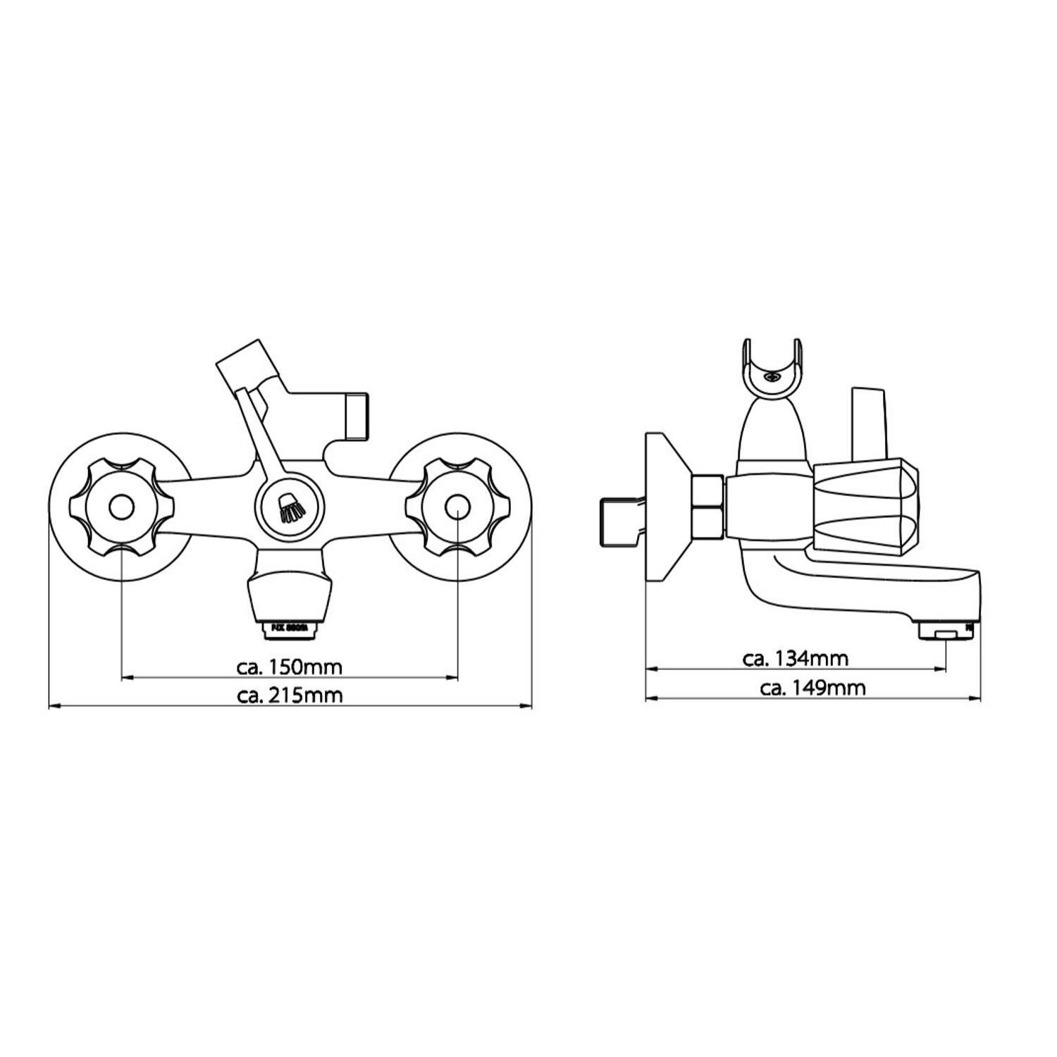 De Savino tweegreeps badmengkraan van het merk Schutte heeft metalen handgrepen en een chromen finish. De mengkraan bevat twee grepen waarmee de temperatuur van het water naar wens geregeld kan worden. De badkraan heeft een 1/2 aansluiting voor een doucheslang en een hendel om te wisselen tussen de badkraan en doucheslang.