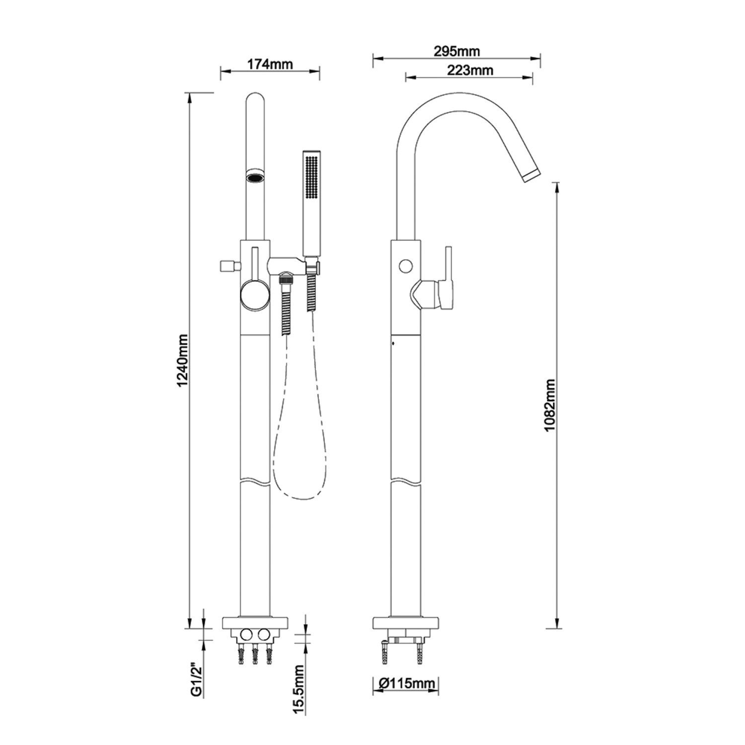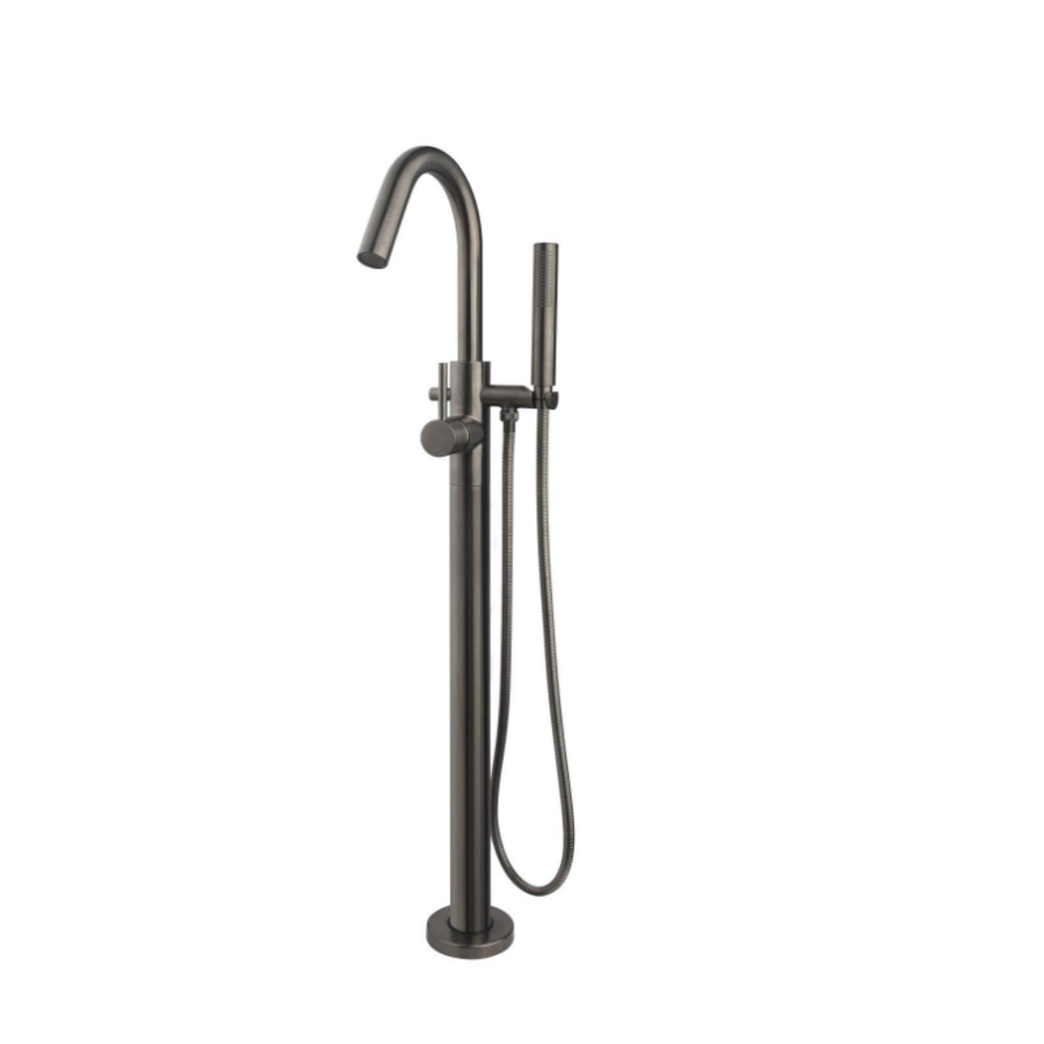 Bij een vrijstaand bad hoort natuurlijk ook een vrijstaande badkraan. Deze vrijstaande badmengkraan is van het merk Wiesbaden en behoort tot de Caral-serie. Het betreft een bijzonder en luxe model dat is afgewerkt in de kleur gunmetal, waardoor deze vrijstaande badkraan een blikvanger in uw badkamer is.