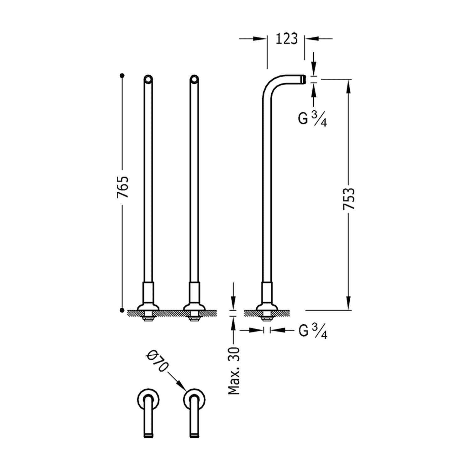 Deze badkraankoppelingen zijn 76.5 cm hoog en hebben een diepte van 12.3 cm. Door gebruik te maken van messing behouden deze badkraankoppelingen jarenlang zijn glans en kwaliteit. Deze zijn uitgevoerd in een RVS kleur.