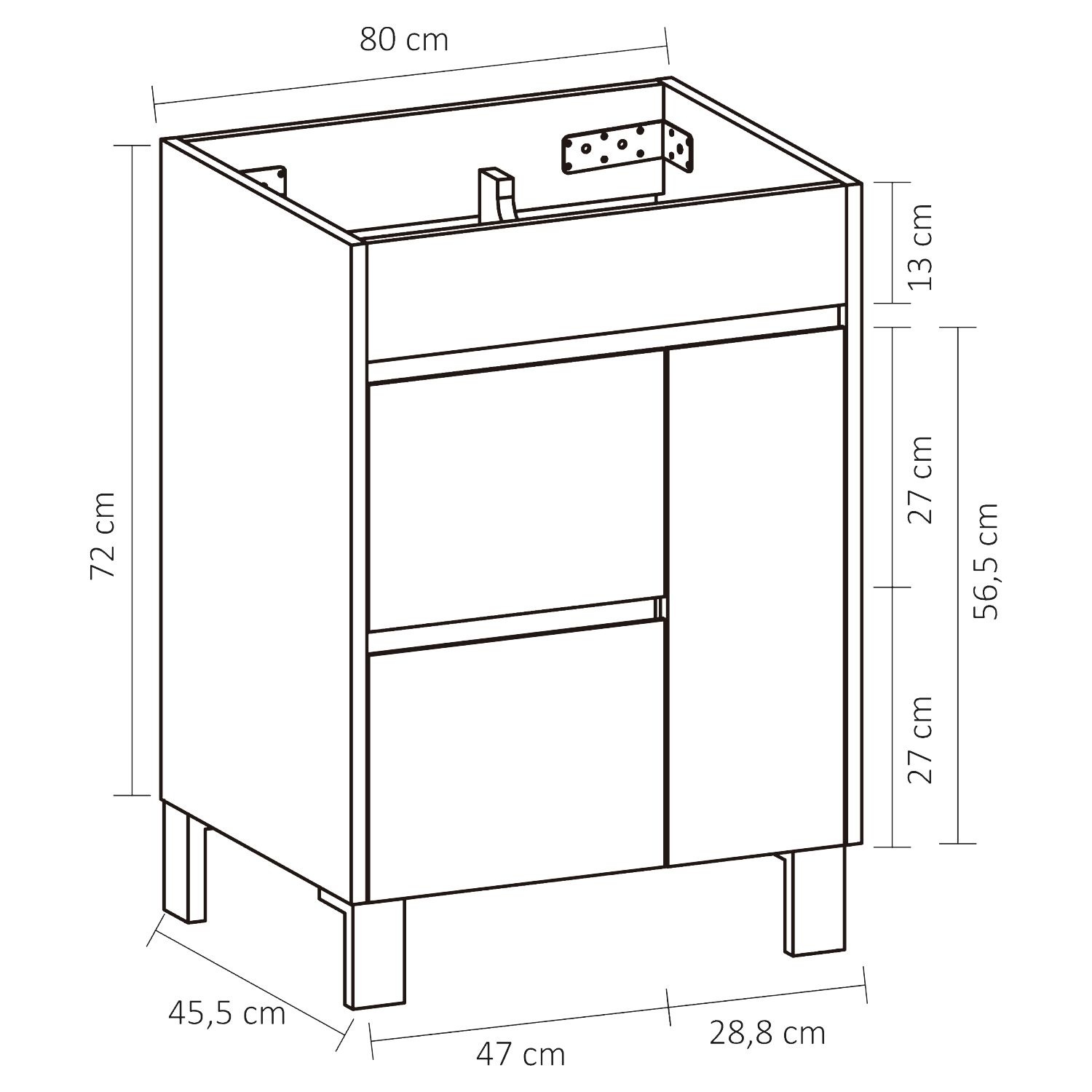 Het complete badmeubel Differnz Sofi 80 cm past door de eenvoudige maar strakke vormgeving in iedere moderne badkamer. De onderkast wordt geleverd met een mooi schuif deur en is uitgevoerd in gelamineerd MDF. MDF is een veelgebruikte houtsoort. Deze meubels zijn afgelakt ter bescherming tegen vocht. Deze meubel is 80 cm breed, 45.5 cm diep en 72 cm hoog. De badmeubel is voorzien van 1 deur en 2 lades die gereeploos design hebben.