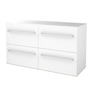 Deze mooie badmeubelset van Aquasplash komt uit de serie Salt, hij is gemaakt van MDF in de kleur Ice White. De hoogte van dit meubel is 65 cm, de breedte van dit meubel is 120 cm en de diepte is 46 cm. De afdekplaat die in deze set zit is gemaakt van hetzelfde materiaal als de onderkast, tevens is deze ook in dezelfde kleur.