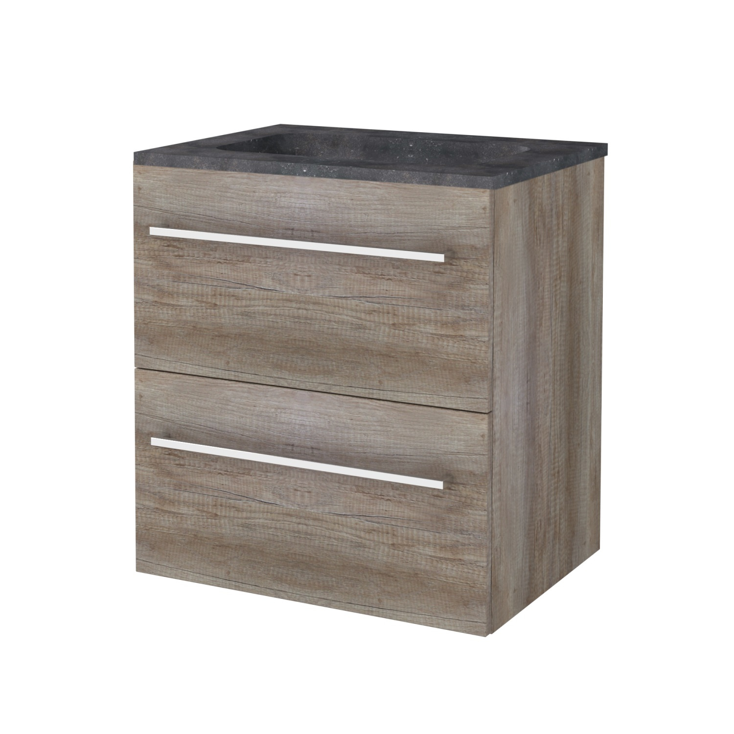 Deze mooie badmeubelset van Aquasplash komt uit de serie Salt, hij is gemaakt van Melamine in de kleur Scotch Oak. De hoogte van dit meubel is 65 cm, de breedte van dit meubel is 60 cm en de diepte is 46 cm. De wastafel die in deze set zit is gemaakt van Hardsteen in een zwart/grijze kleur.