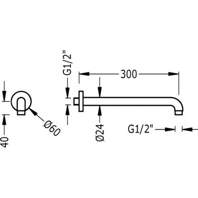 Barras Y Ducha Muur uitloop voor regendouche Lengte 300 mm.