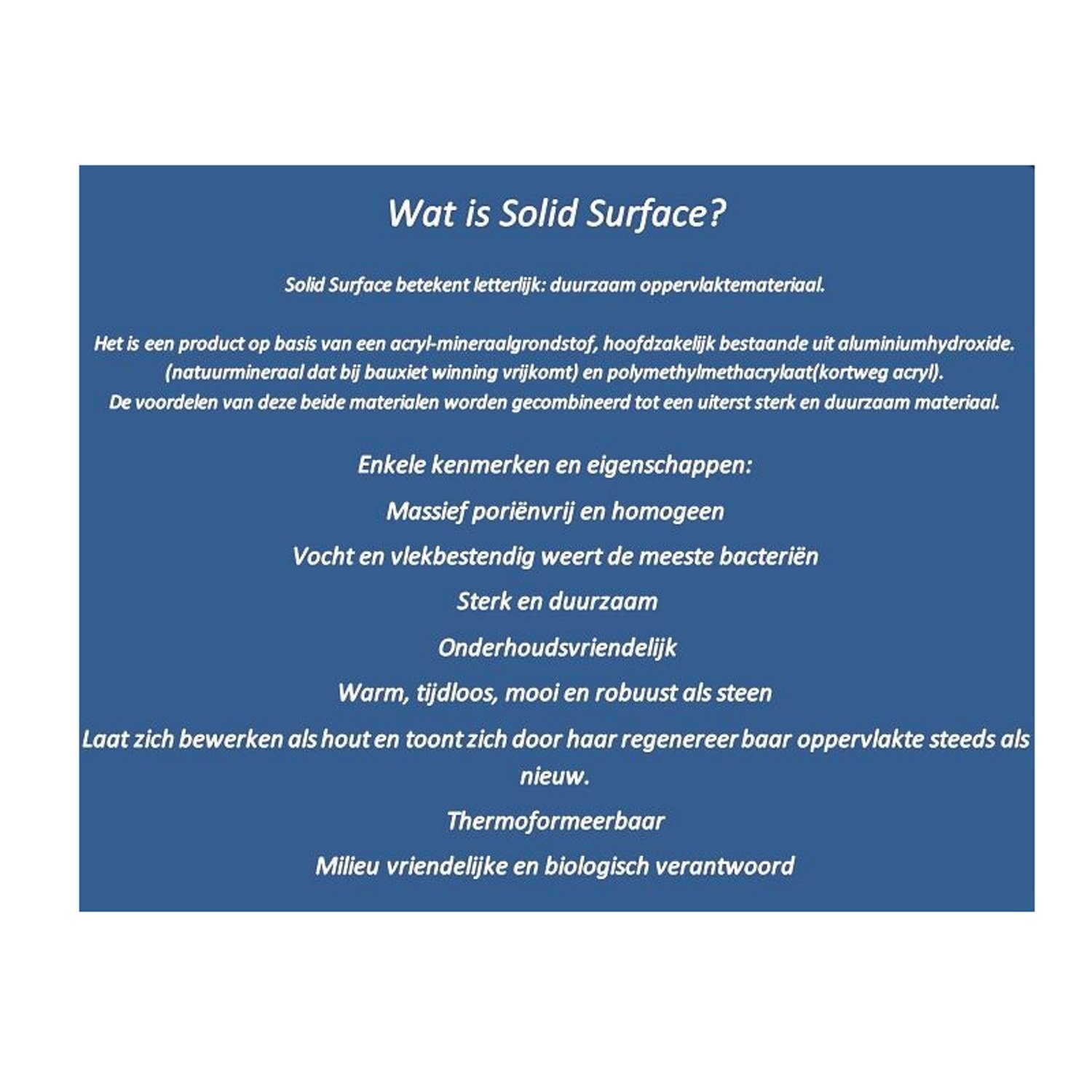 Deze moderne design wastafel van het merk Best Design komt uit de Oasis serie. Deze wastafel is geschikt voor de meubels met een afmeting van 60cm. De wastafel is gemaakt van solid surface met een mat witte kleur. De diameter van het afvoergat is 5/4'', de afmetingen van de wastafel zelf zijn; 60 cm breed, 14.5 cm hoog en 46 cm diep. De wastafel is niet voorzien van een kraangat. Wel is een markering voor het kraangat aanwezig. Met het meegeleverde bevestigingsmateriaal kunt u de wastafel monteren.
