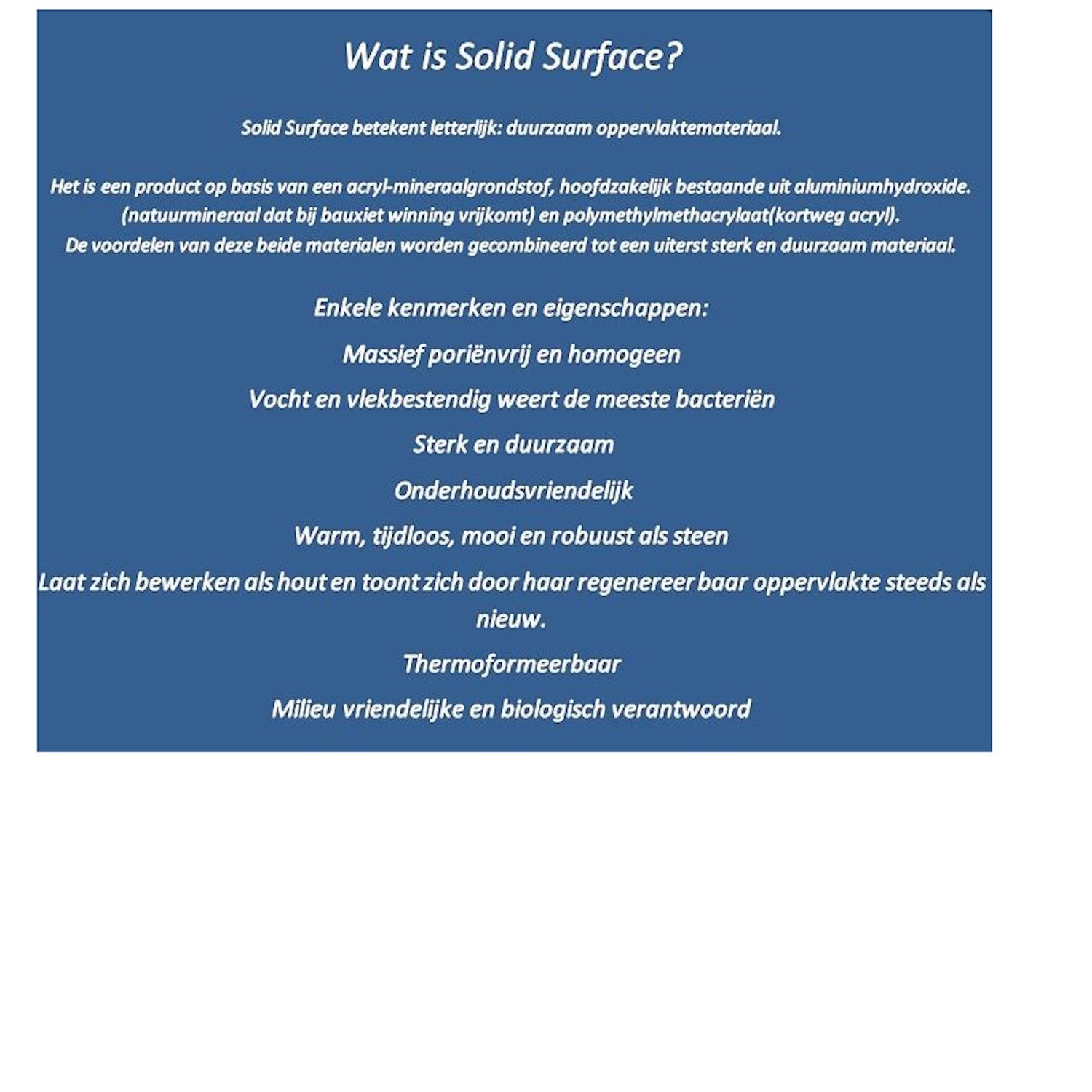 Deze moderne design fontein heeft een hoogte van 20 cm, een breedte van 54 cm en een diepte van 20 cm. Het afvoergat heeft een diameter van 5/4''. De fontein is gemaakt van solid-surface en een afvoerplug wordt meegeleverd. Voor het kraangat is een markering aanwezig. Verder kunt u deze rechthoekige fontein bevestigen met het meegeleverde bevestigingsmateriaal.