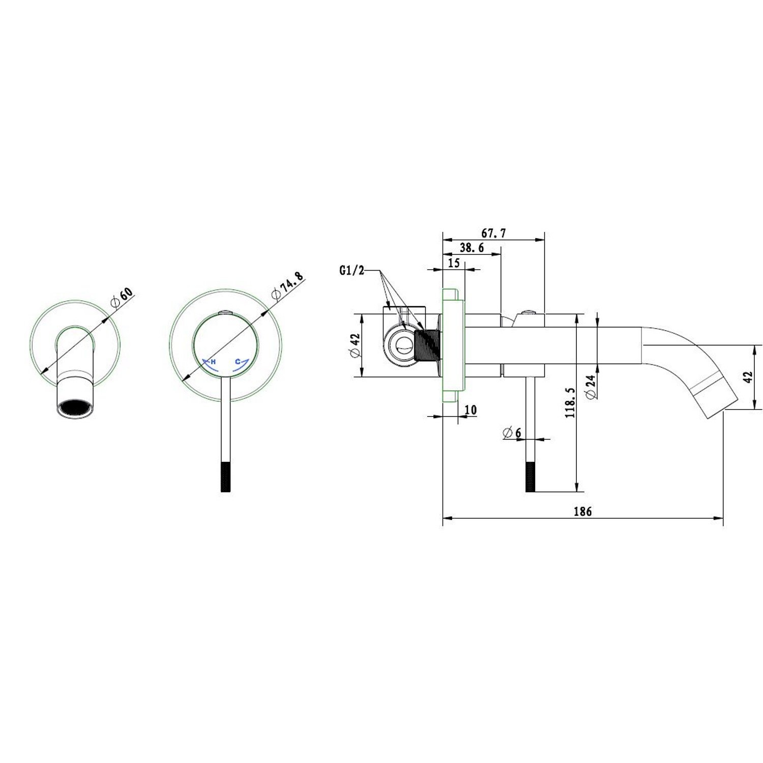 Deze inbouw wandmengkraan van het merk best design komt uit de serie ore decorata. Het is een prachtige kraan die gemaakt is van messing met een rvs uiterlijk. De kraan wordt in de wand ingebouwd en alle onderdelen hiervoor worden meegeleverd. De aansluiting om ervoor te zorgen dat de kraan werkt is maar liefst 1/2''. De uitloop heeft een lengte van 20cm en wordt bediend met de hendel die naast de uitloop gemonteerd wordt. De stijl van deze kraan is modern met een industrieel retro uiterlijk. Het binnenwerk van de kraan is keramisch.