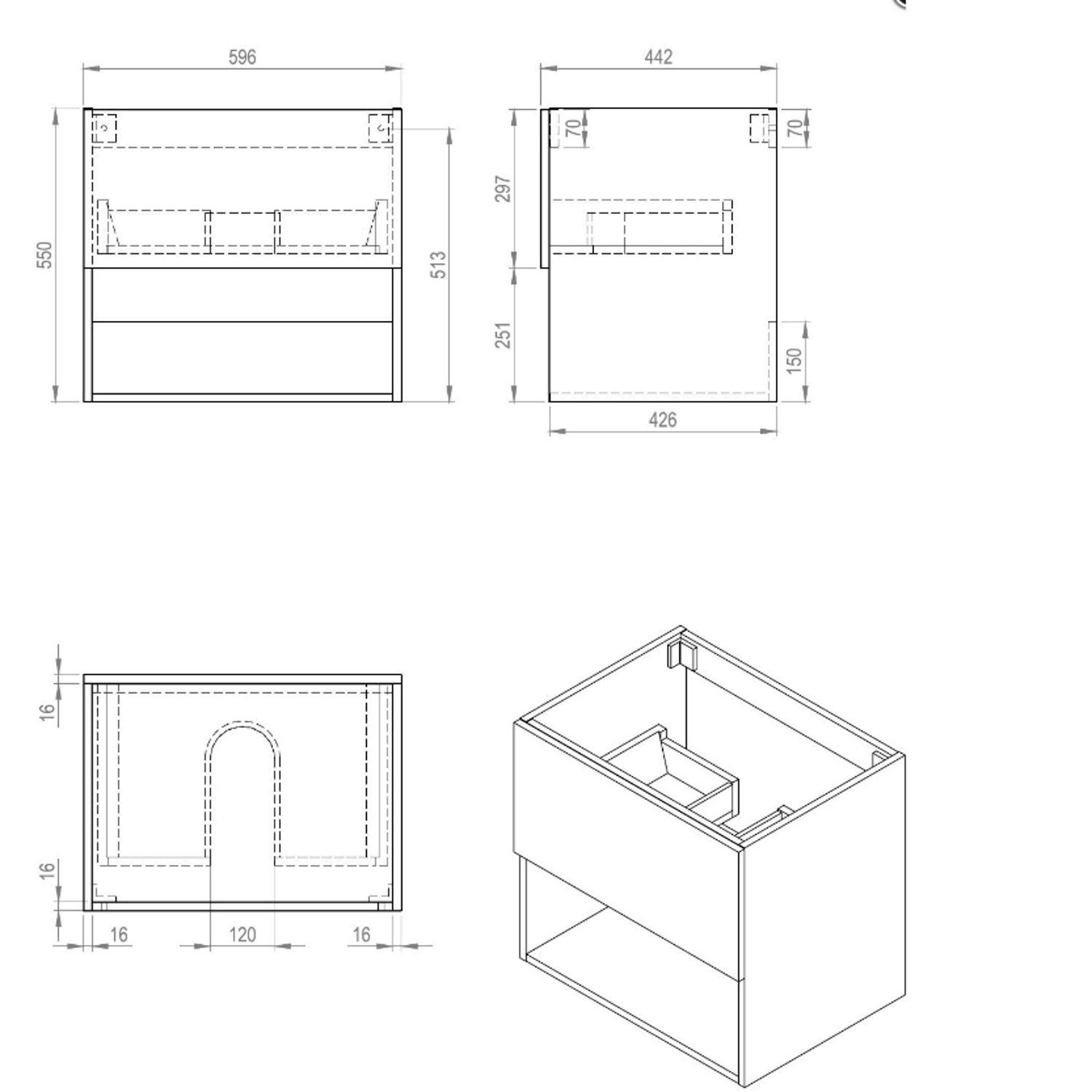 Uit de serie Rigatti van Best-Design komt dit fraaie meubel. Het meubel is greeploos en 59.6 cm breed. De diepte van het meubel is 44,2 cm en hij is 55 cm hoog. Het meubel is ook uitermate geschikt voor het plaatsen van een waskom of wastafel. De onderkast is afgewerkt met vochtwerende pvc folie. Het halifax gekleurde meubel heeft 1 softclose lade en de binnenkant van de lade is zwart gekleurd. Het materiaal van het meubel is van MDF. Verder is het bevestigingsmateriaal inclusief.