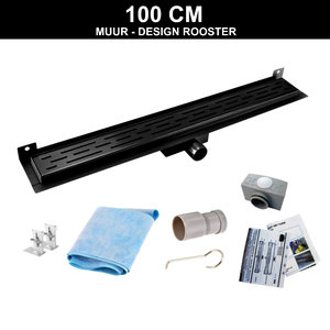 Mat Zwarte RVS Douchegoot Muurflens met uitneembaar sifon 100x7cm 6,7cm diep Mat Zwart