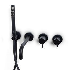 Badkraan Inbouw Bongio Squadra Thermostatisch 22 cm Uitloop met Handdoucheset en 2-Weg Omstel Mat Zwart