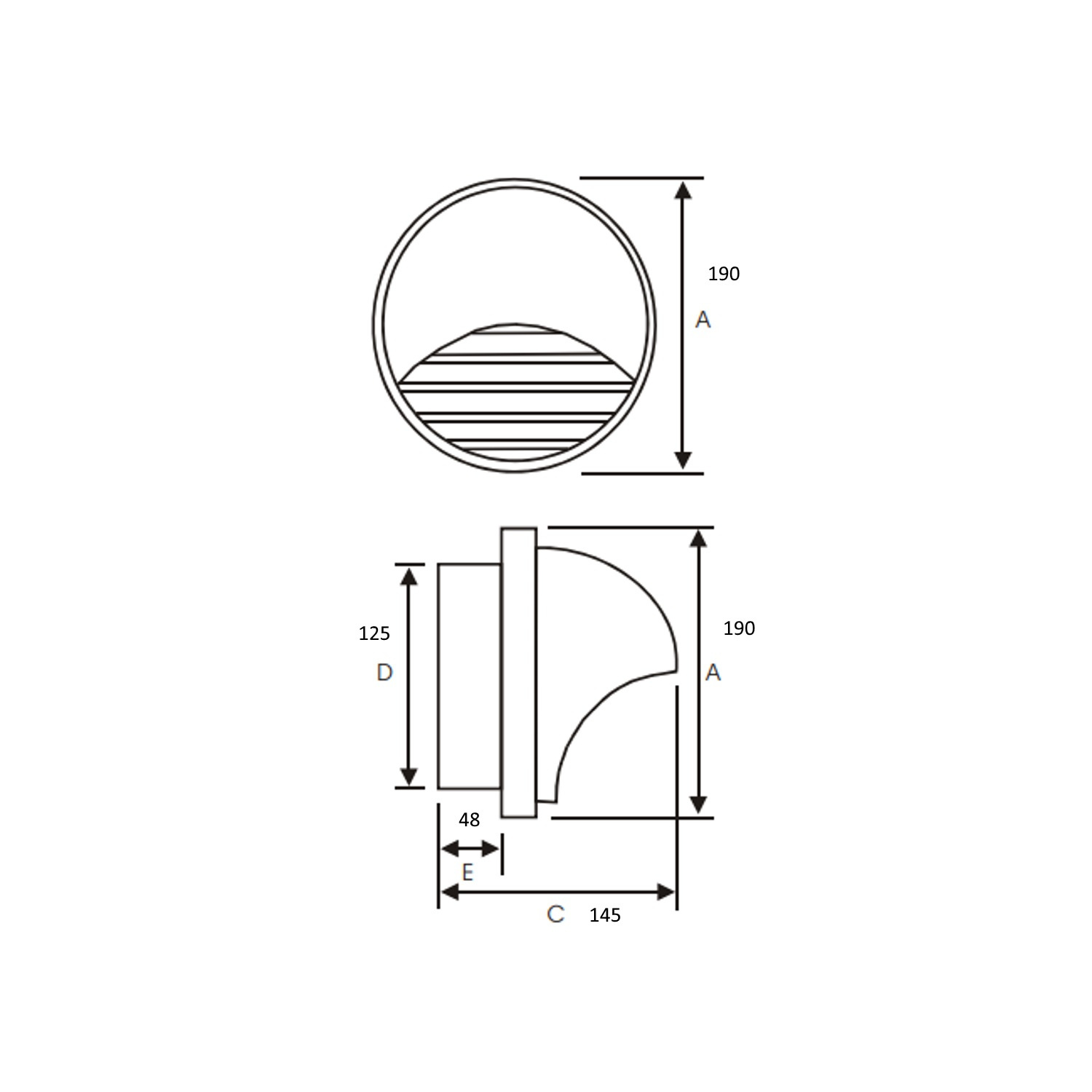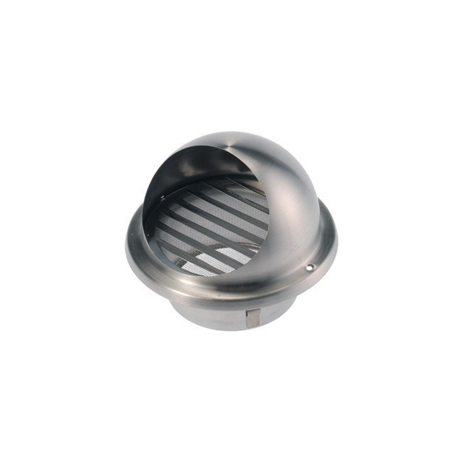 Dit ventilatierooster heeft een ronde vorm en het heeft een geborstelde RVS afwerking. Dit model is niet afsluitbaar. Het bevat een buisaansluiting met klemveren voor eenvoudig montage bij een buis van 125 mm. Binnenzijde van het rooster is voorzien van muggengaas.