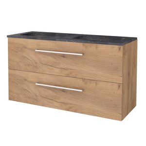Badmeubelset Aquasplash Salt 120x46cm Met Grepen (Kleurkeuze) 2 Lades Met Wastafel Hardsteen 2 Kraangaten Scotch Oak