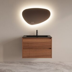Badmeubelset BWS Riga Met Asia Wastafel Mat Zwart 80 cm Walnoot