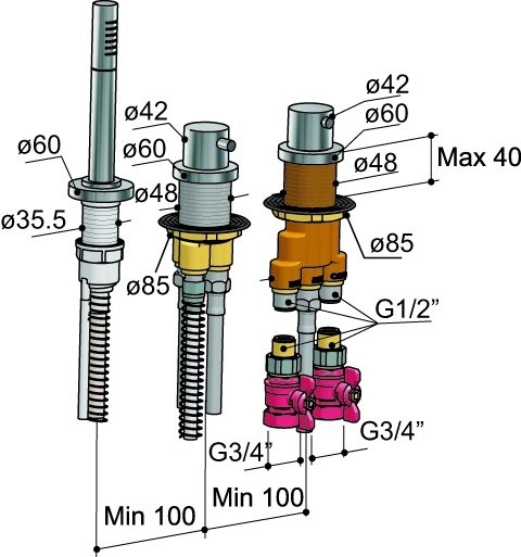Badrandcombinatie, zonder uitloop, met 2-weg stop omstel en handdouche. Bij dit product wordt de 'follow-me' P060 afvoerkoppelstuk geleverd. Dit koppelstuk past alleen op Hotbath producten.